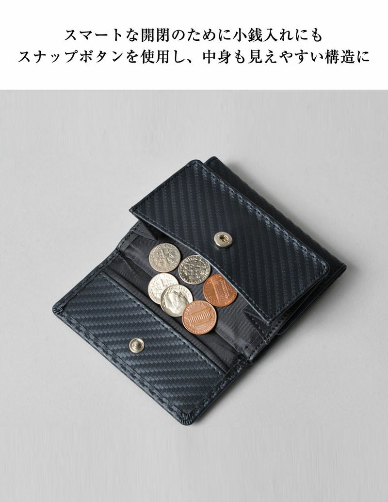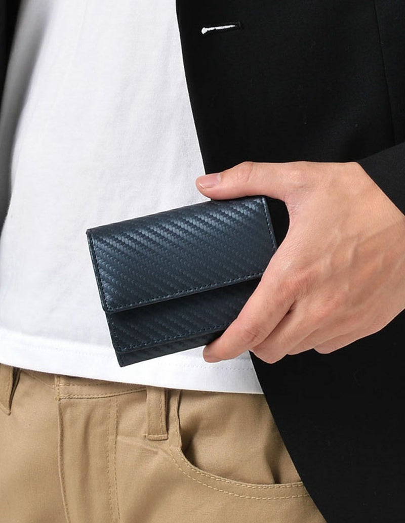 本革カーボンレザーの美しさが光る、片手に収まるコンパクトミニウォレットが登場。