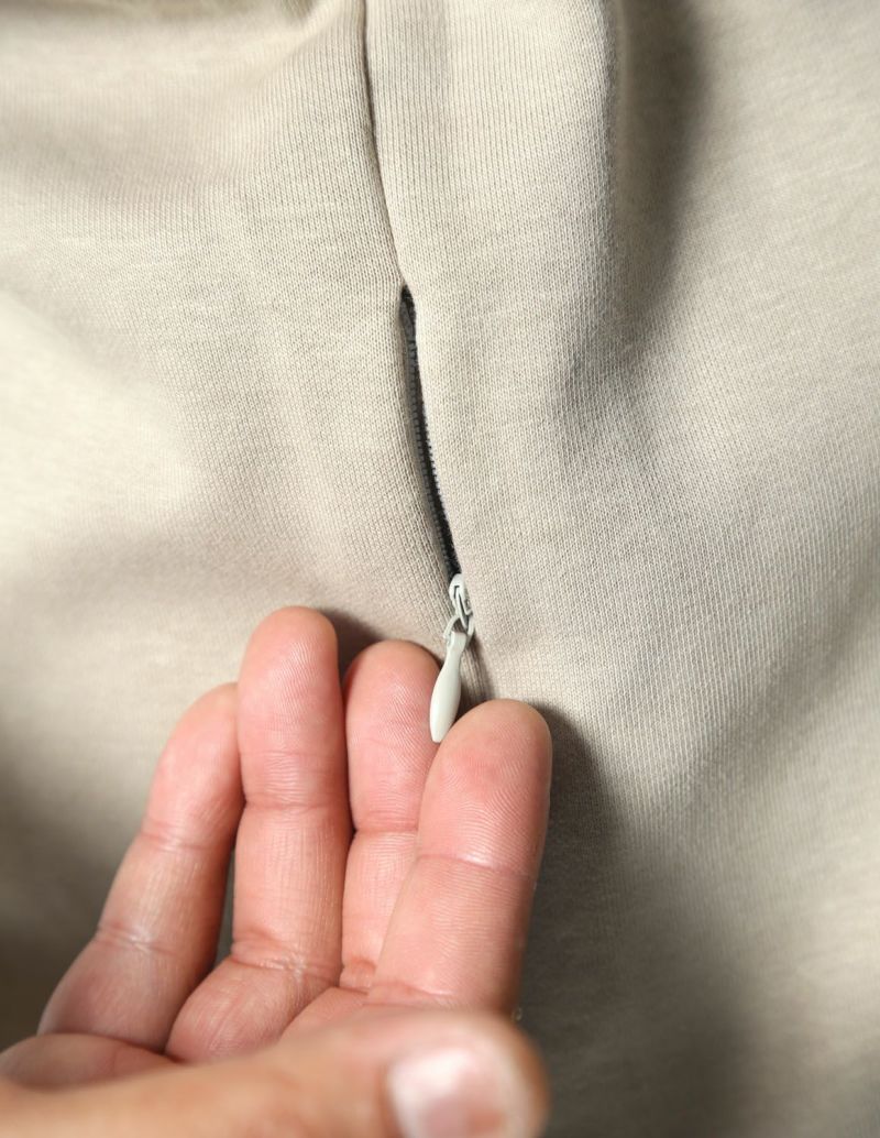 両サイドにジップが付いており、シャツやパンツをチラッと見せることのできる遊び心あるデザインに。