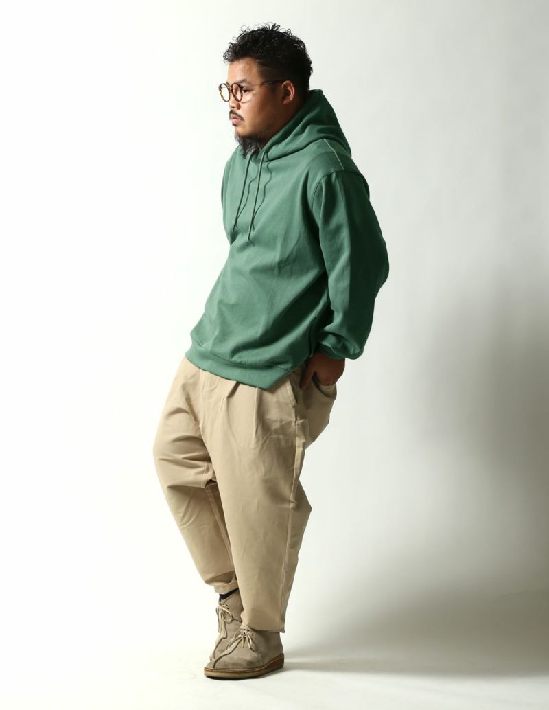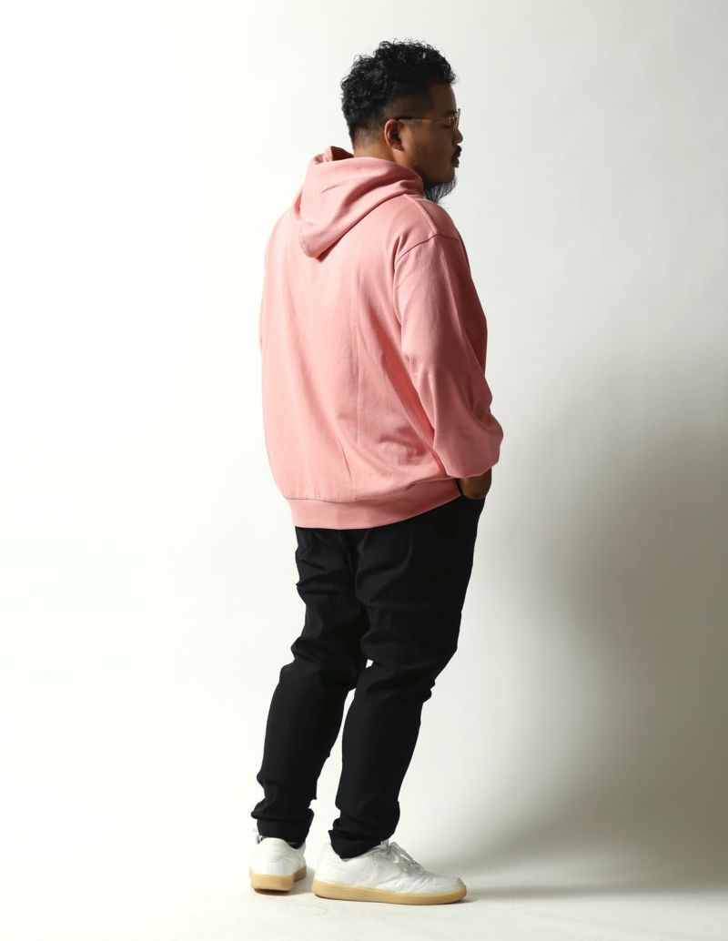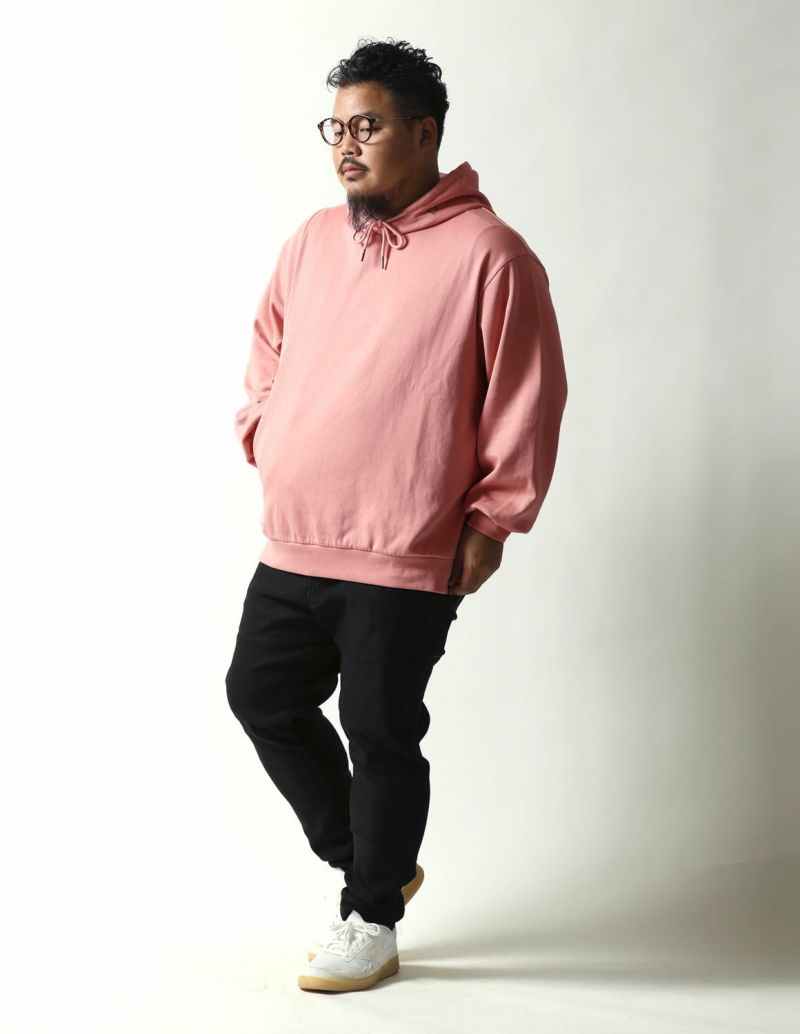 僕は166/112のチビデブで普段は3L〜4Lの服をメインで着ていますが、このパーカーは他メーカーと比べてサイズが大きく自分は2Lがピッタリ(パツパツでは無い)でした。