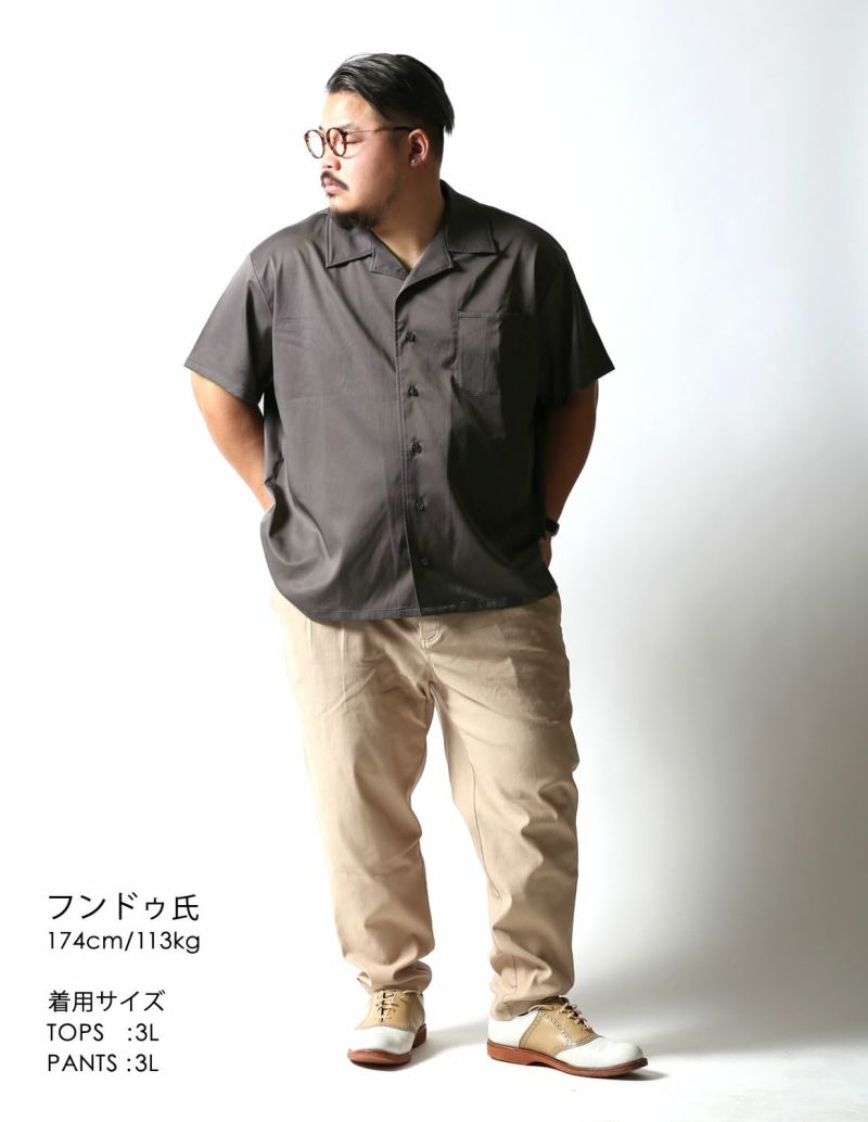 生地は艶がありキレイめながらもシルエットはゆったりでカジュアルに楽しめます。