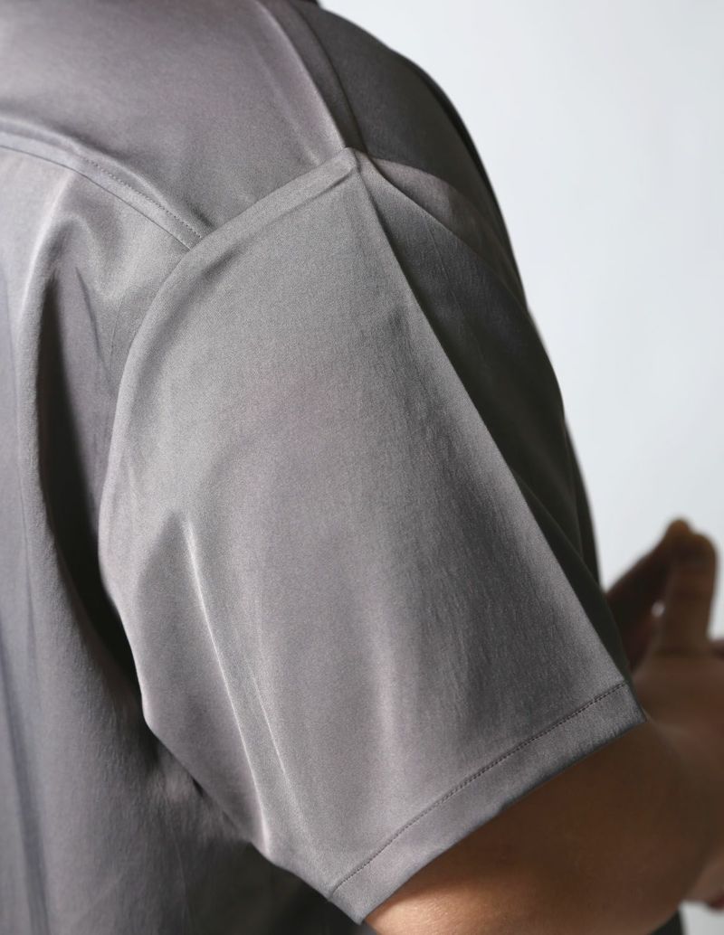 Beluca(ベルーカ)から大人らしさある艶感とゆるっとしたシルエットがキレイな「Rubbing(ラビング)」オープンカラー半袖シャツが登場。