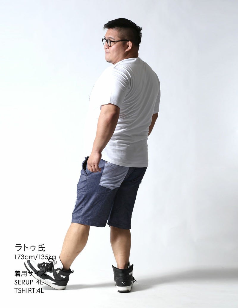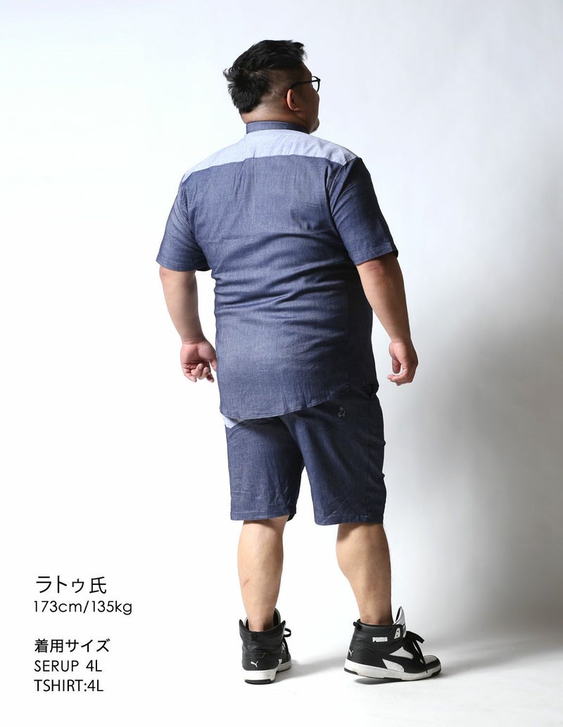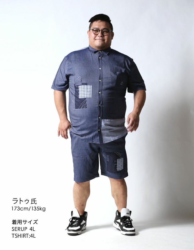 デニム生地のハーフパンツなので様々なアイテムと相性抜群!セットアップ対応の半袖シャツと合わせてさらに可愛く!