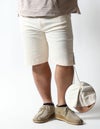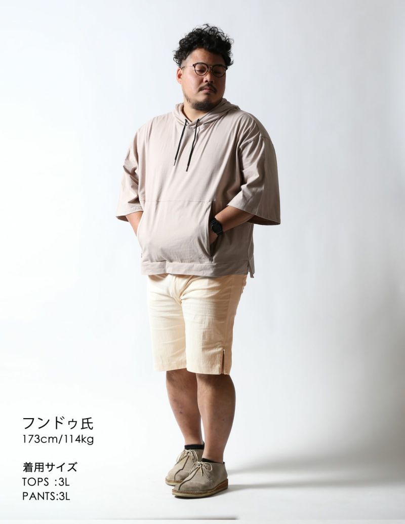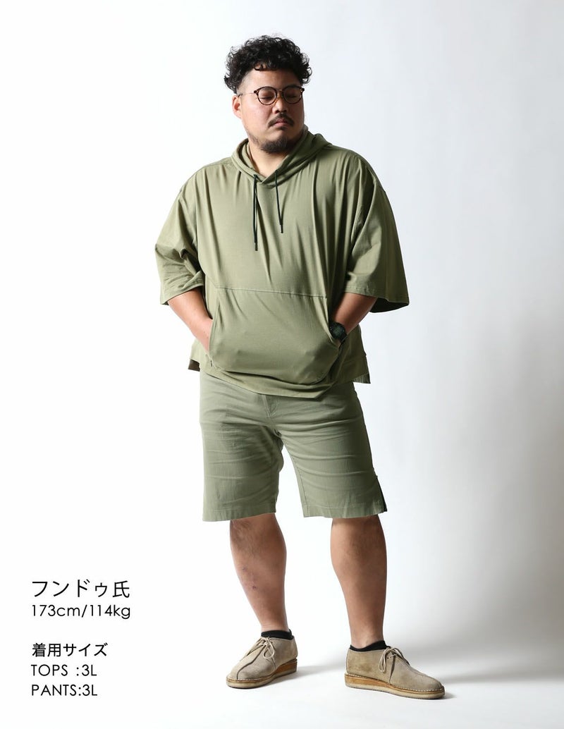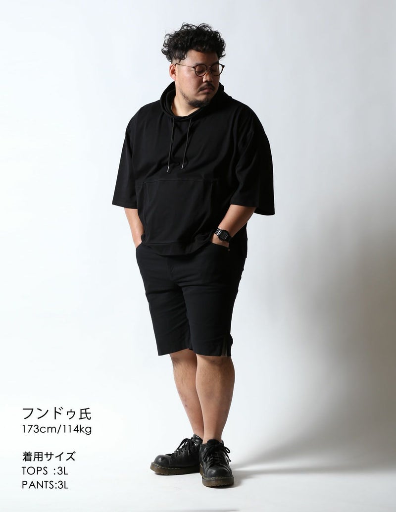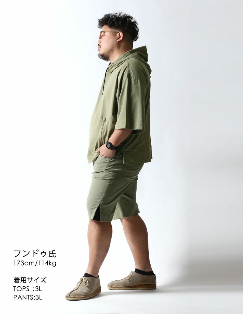 丈感をほぼひざ上にくるようにサイズを調整し、大人でも穿けるハーフパンツに。