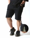 一見普通のハーフパンツですが、サイドのファスナースリットから別カラーのマチがチラッと見えてお洒落さんです。