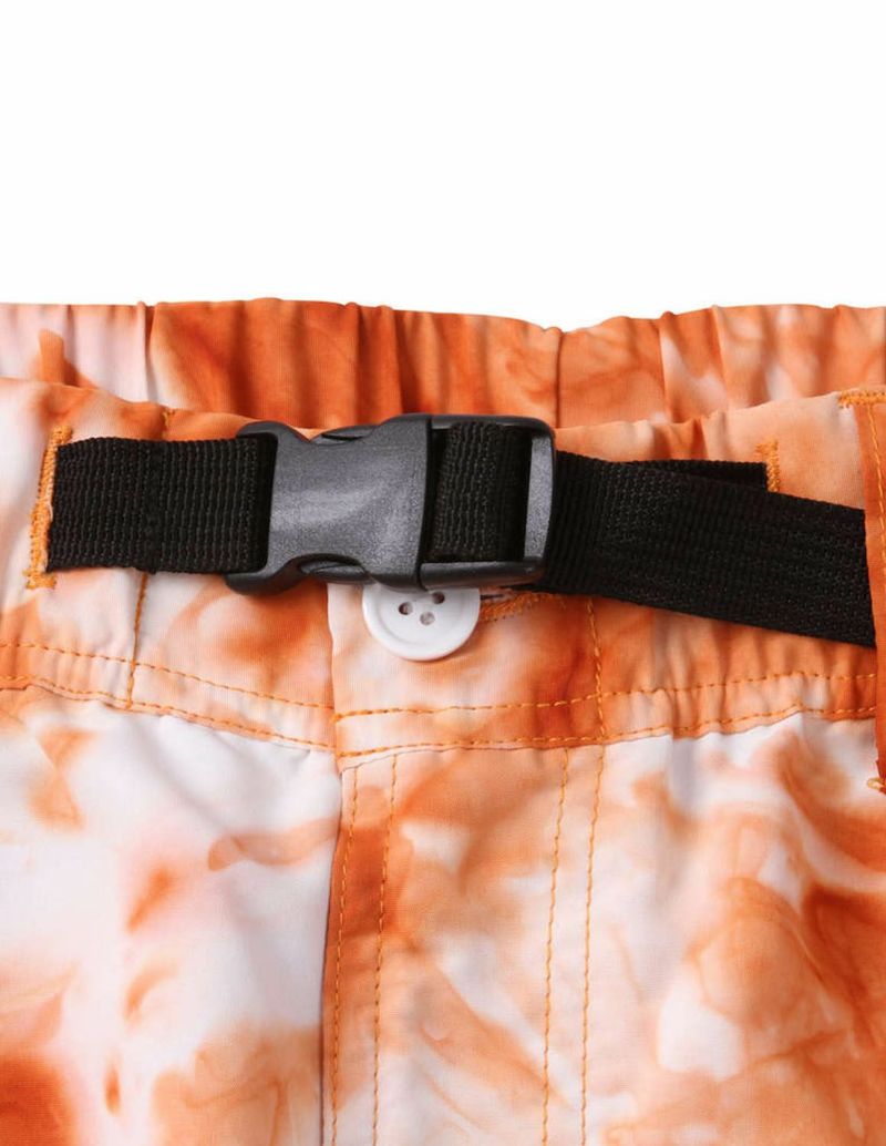 前開きファスナー/サイド・バックポケット有/ベルトループ1本/ウエストシャーリング(調節ベルト有)/ワンタッチバックルベルト/刺繍/ポケット裏側メッシュ/タイダイ染