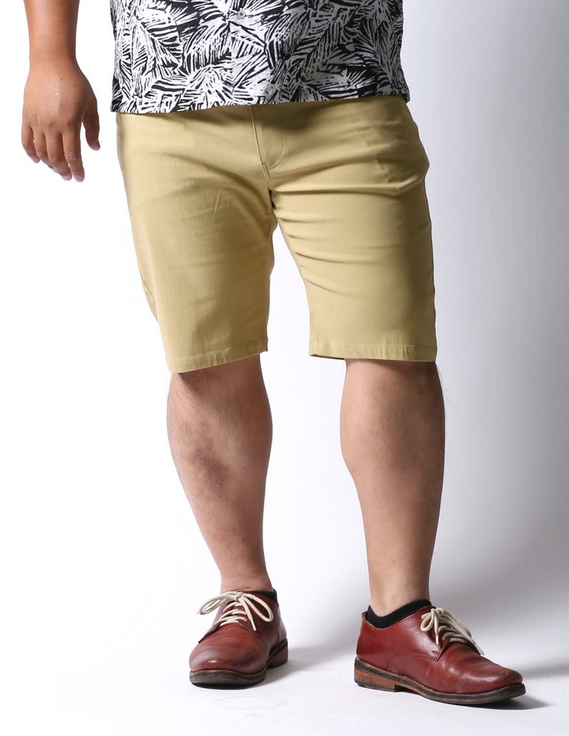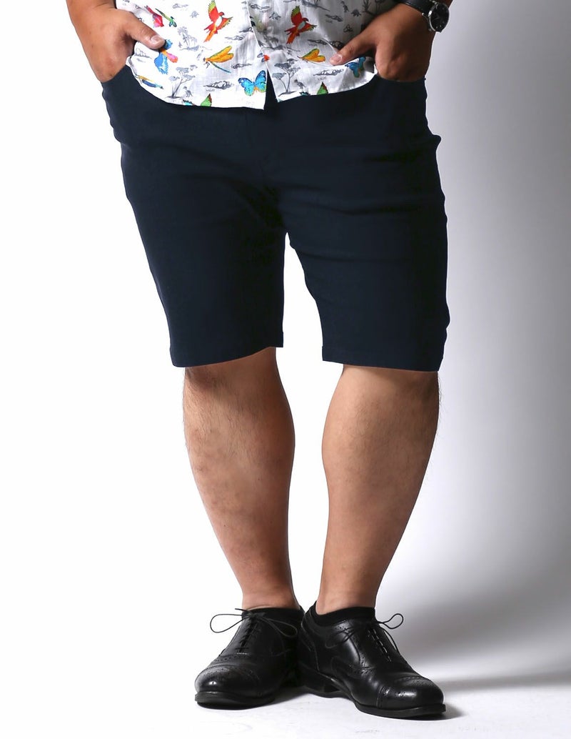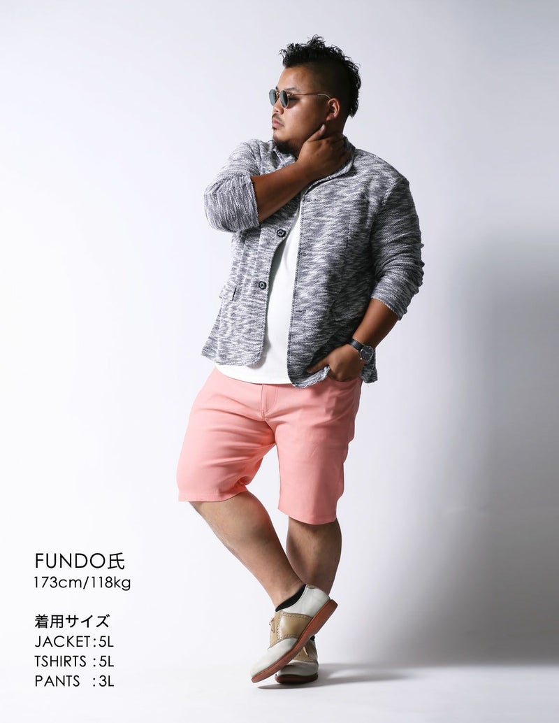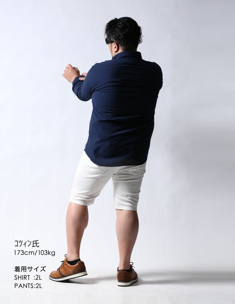 今までの大きいサイズのハーフパンツは裾口が広くてダボっとしていましたが、ストレッチが身体に程よくフィットし、ハーフパンツでもキレイなシルエットを実現しました。