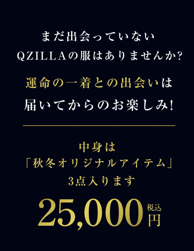 税込25,000円で、QZILLA秋冬アイテムが3点入り。