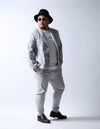 カジュアルスーツとして、Tシャツの上から羽織るだけでお洒落です。シャツを合せればカチッとした印象にもなります。
