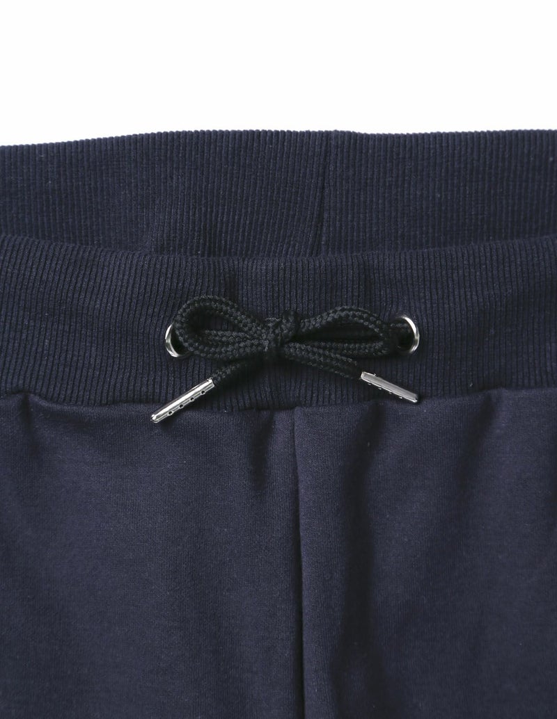 見た目はスタイリッシュですが、生地はスウェットなので、程よいリラックス感とストレスフリーの着心地。しっかりとしたスウェット生地はただ伸びるだけでなく、しっかりと戻るので、徐々に体型になじんでいくのもポイント。