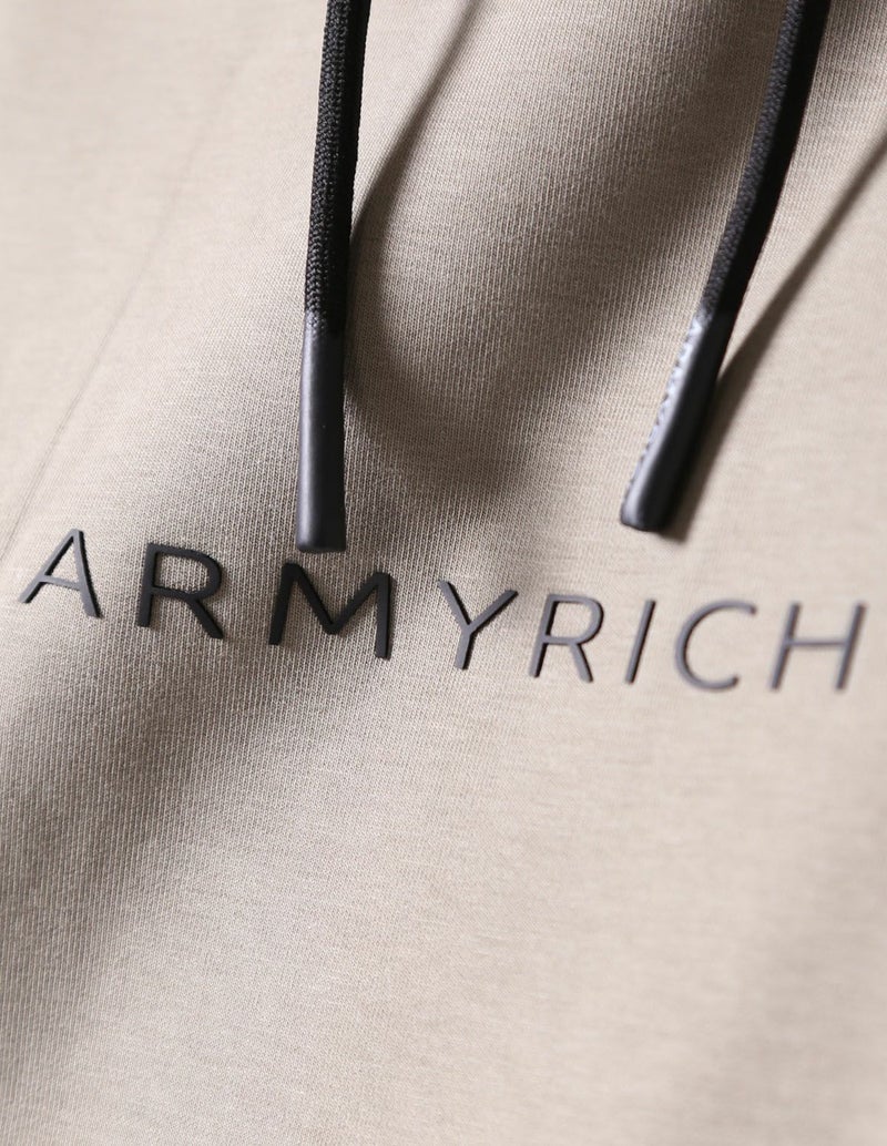 厚手の生地感でフードも立ちやすく、ボリューミーな顔回りが小顔効果を与えます。また、トップスのフロント部分には厚さ1mmの3Dプリントを採用。
