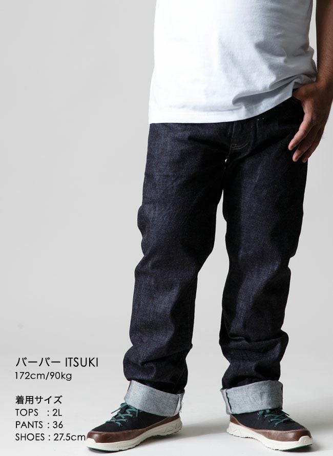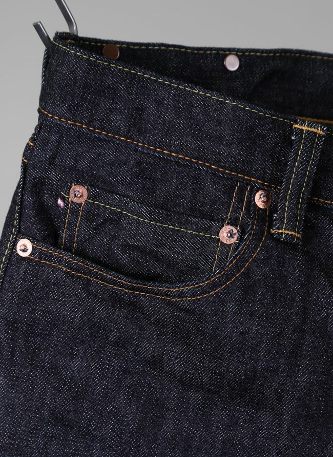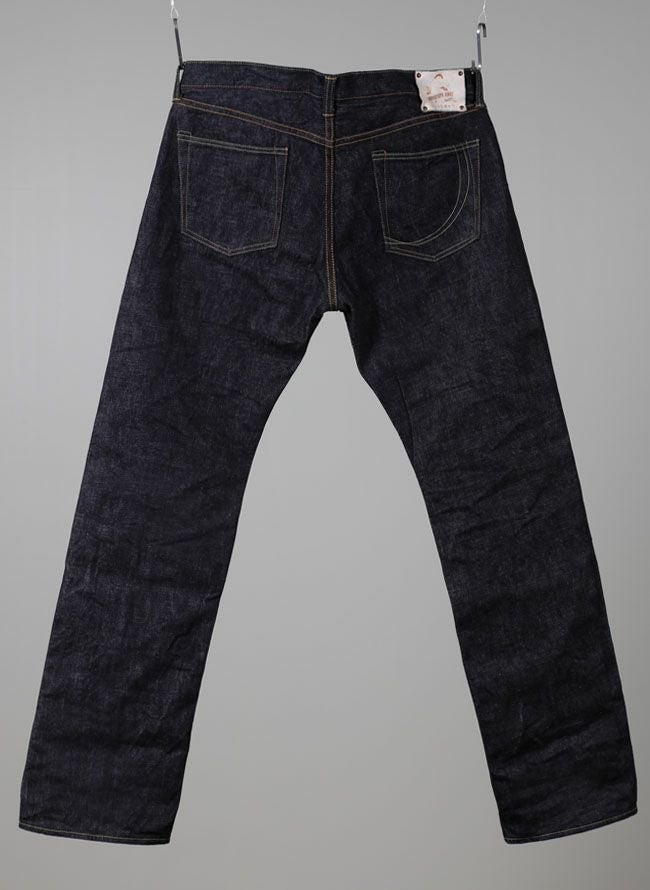 世界最特濃カラーで非常に無骨な印象を持ちつつ、ジンバブエコットンの超長綿の性質と(出陣レーベルより若干薄手な)14.7ozデニムの為非常にソフトな履き心地となっています。