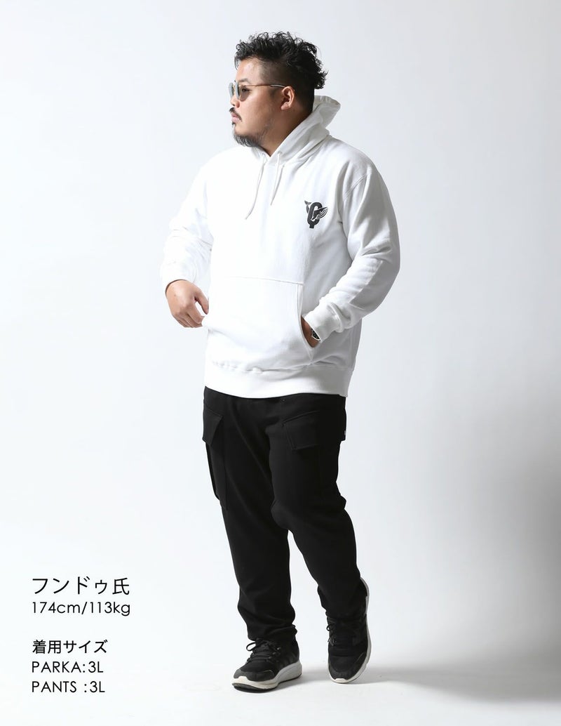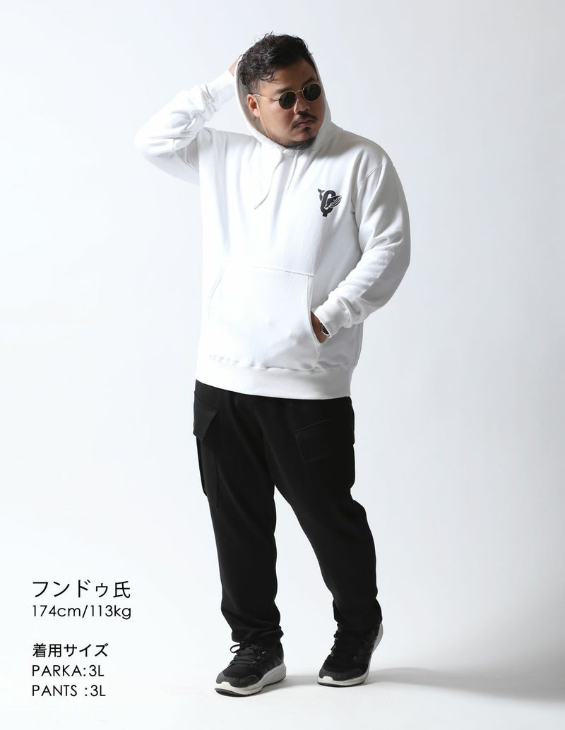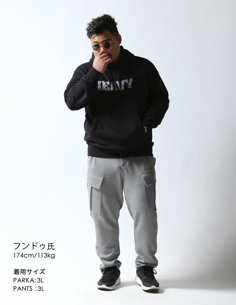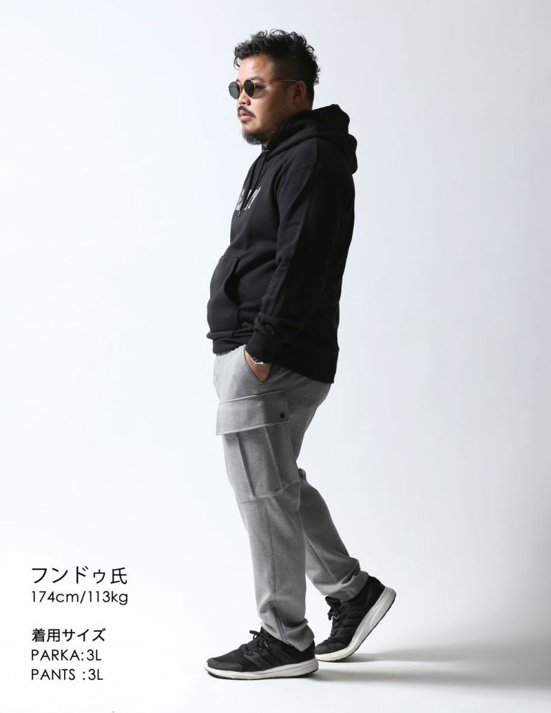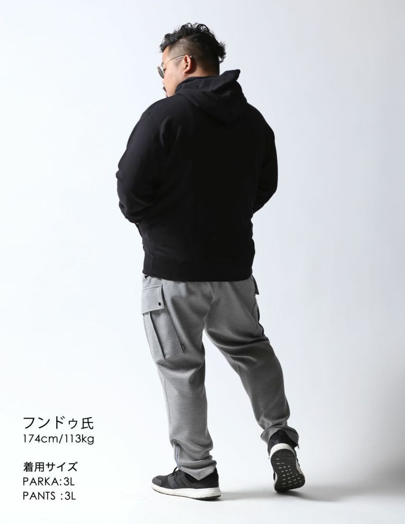 タウンユースはもちろん、ストレッチが効いていのでスポーツなどの動くシーンでも活躍します。同素材の「極柔カーゴパンツ」と組み合わせてパーカーセットアップとしても着られます。