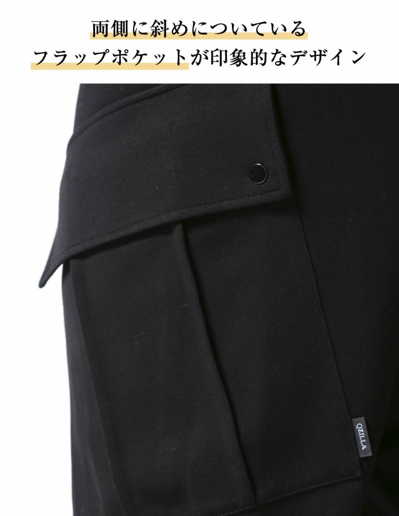両側に斜めについているフラップポケットが印象的な、ダンボールニット素材を使用した「極柔 カーゴパンツ」が登場。