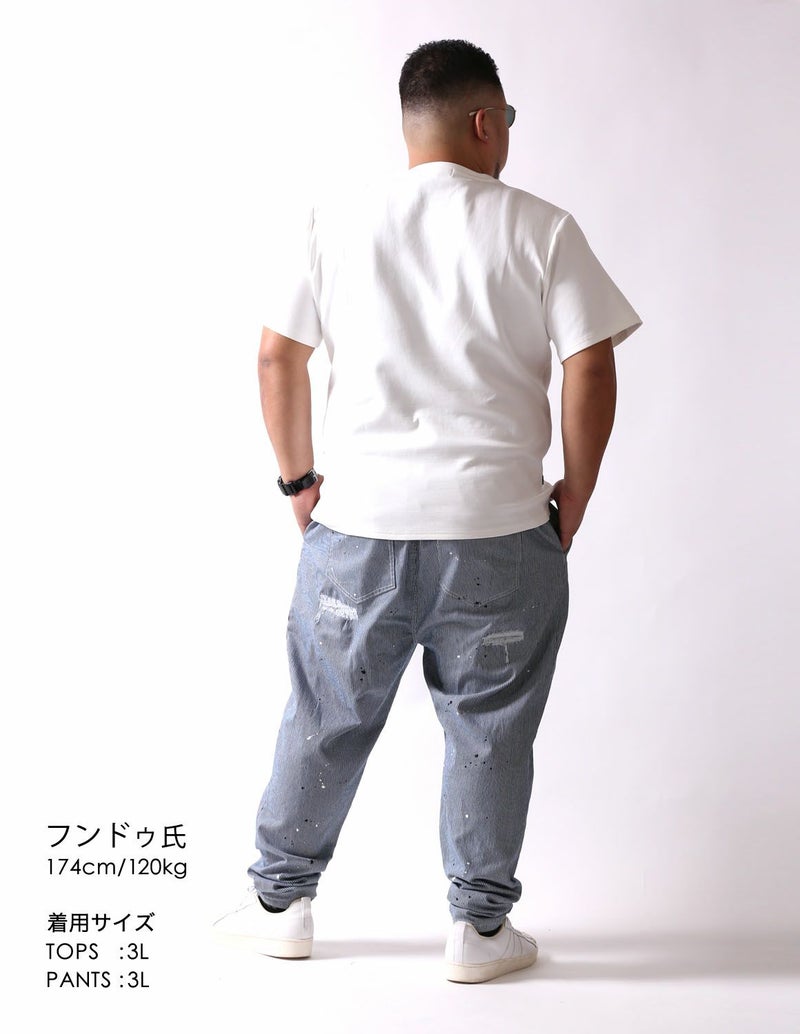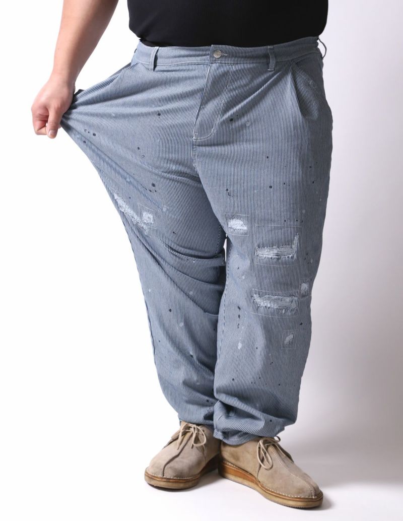※本製品は裾部分までダメージ・ペンキ加工が施されているため、裾上げによってダメージ・ペンキ加工が損なわれる場合がございます。 裾上げをご希望の場合は十分にご留意くださいませ。