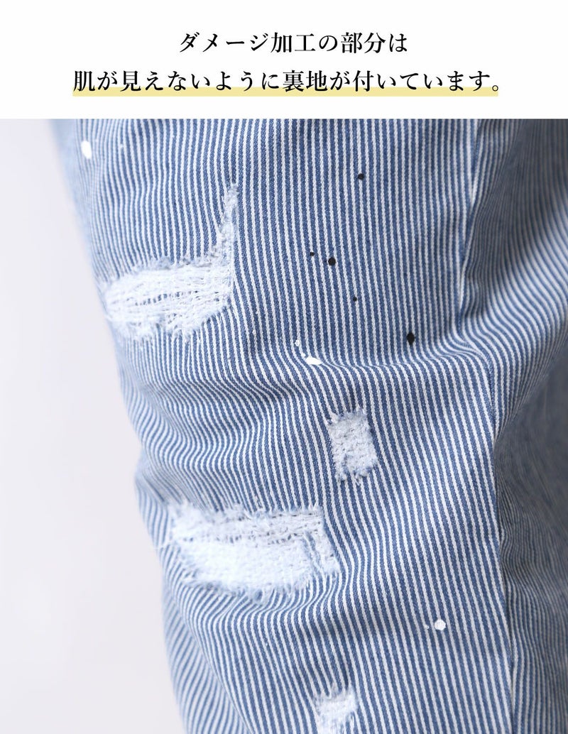 ダメージ加工の部分は肌が見えないように裏地が付いています。