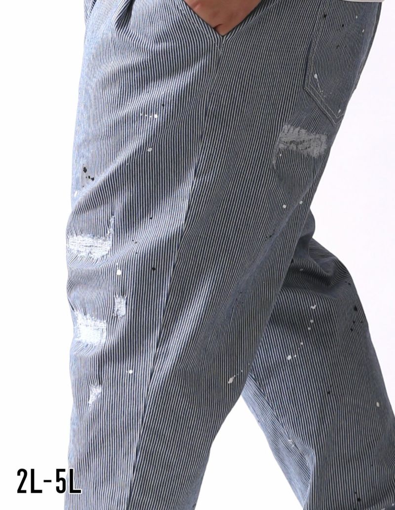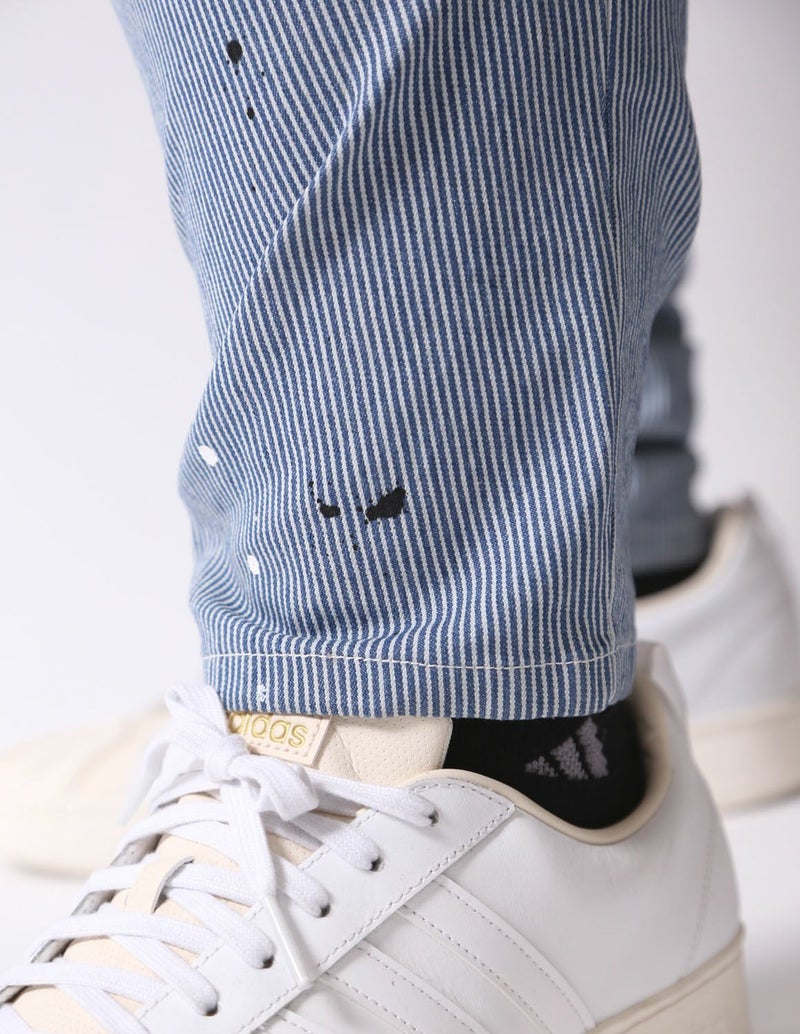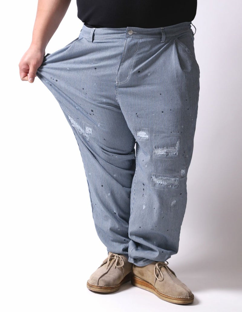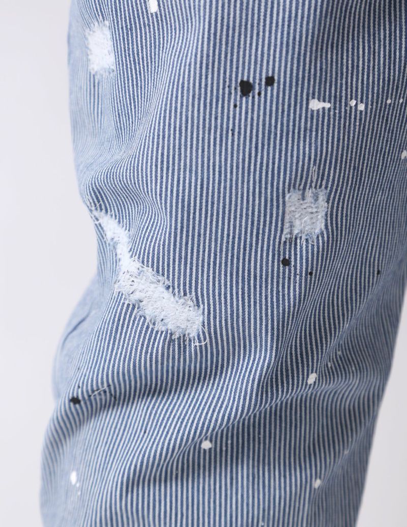 QZILLAオリジナルの爽やかなヒッコリー生地にダメージ・ペンキなどのユーズド加工を施した「感鯨 Hickory Splash!」が登場。