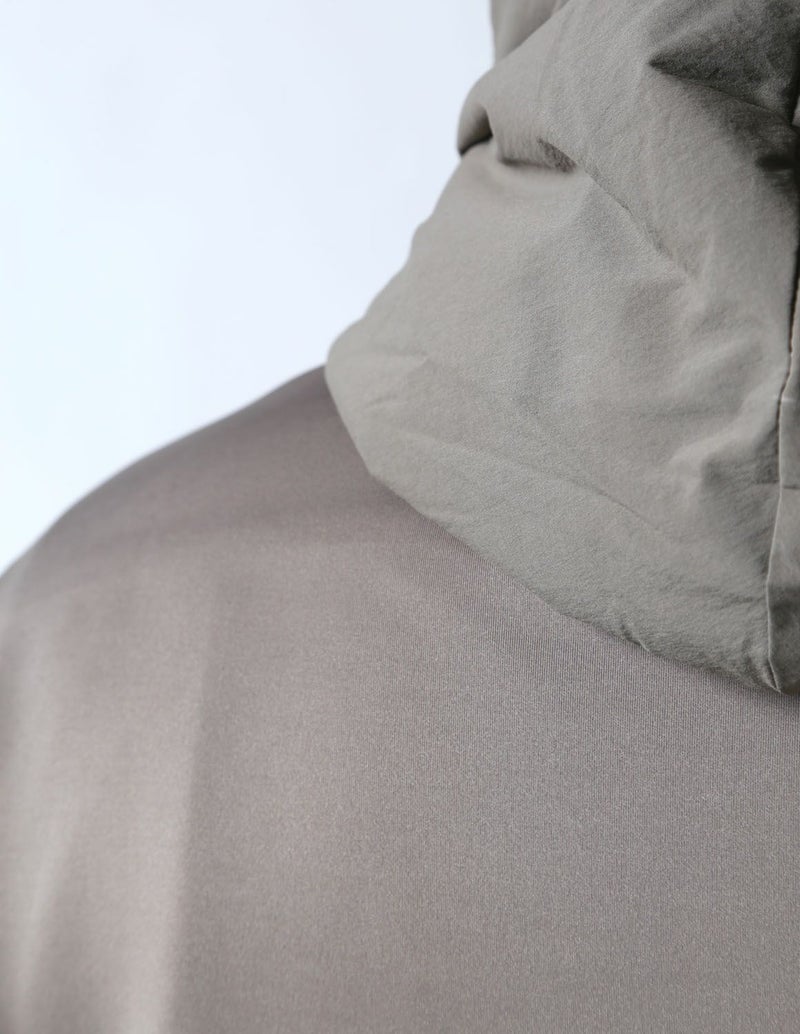 • 異素材使いのコンビデザインで、中綿入りの立体フードや、立体ポケットがアクセントの洒落感溢れる表情が魅力です。
