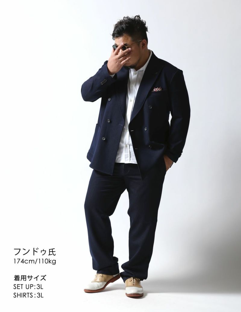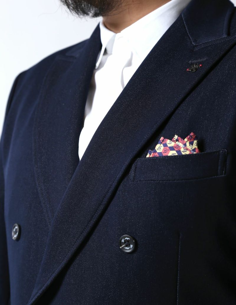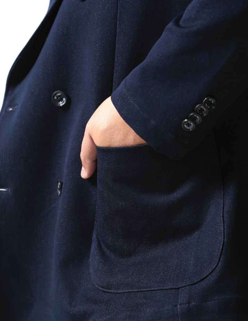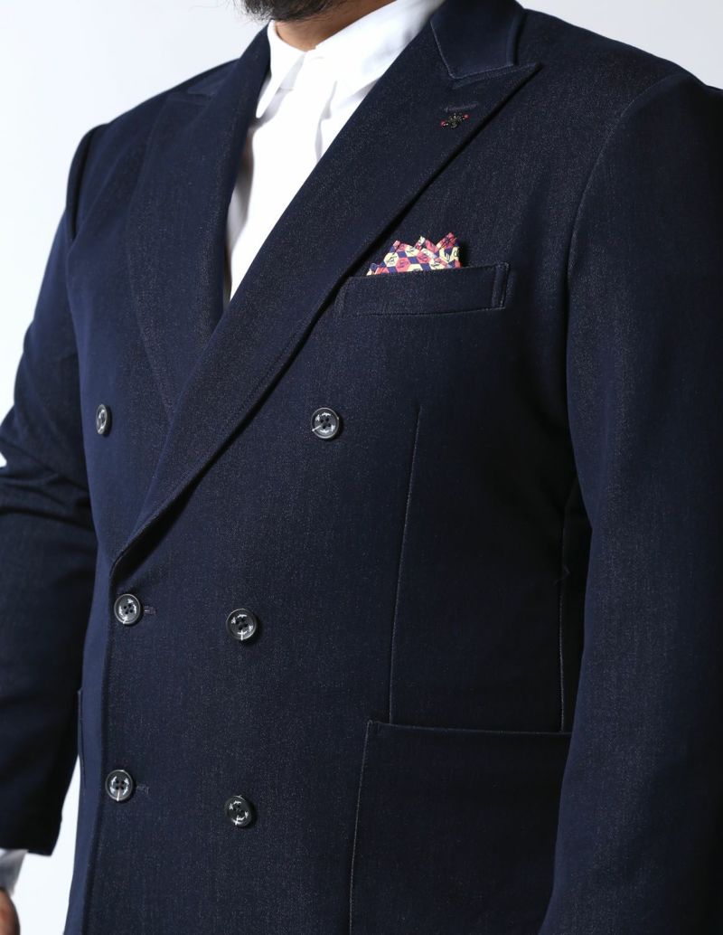 Gstage(ジーステージ)からリジッドデニムの無骨な面持に伸縮性をプラスした「デニムライク ダブルブレストセットアップ」が登場。