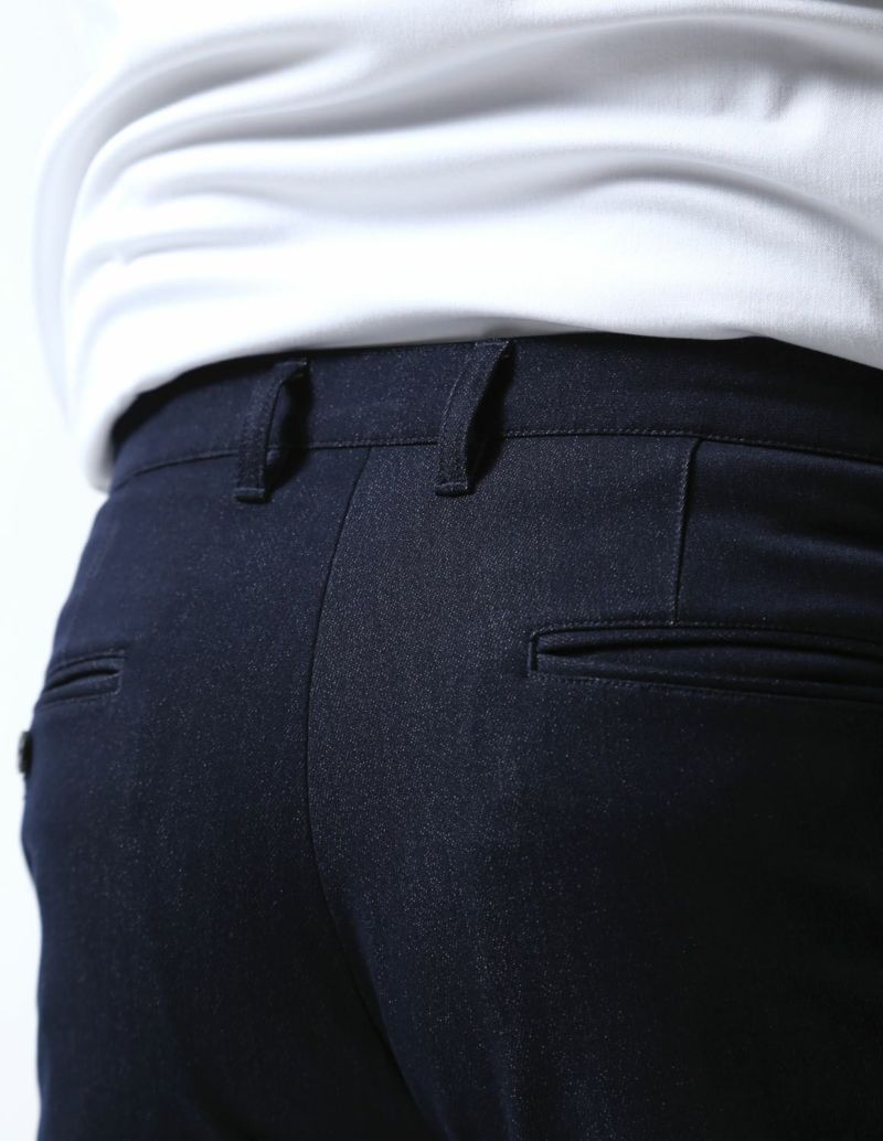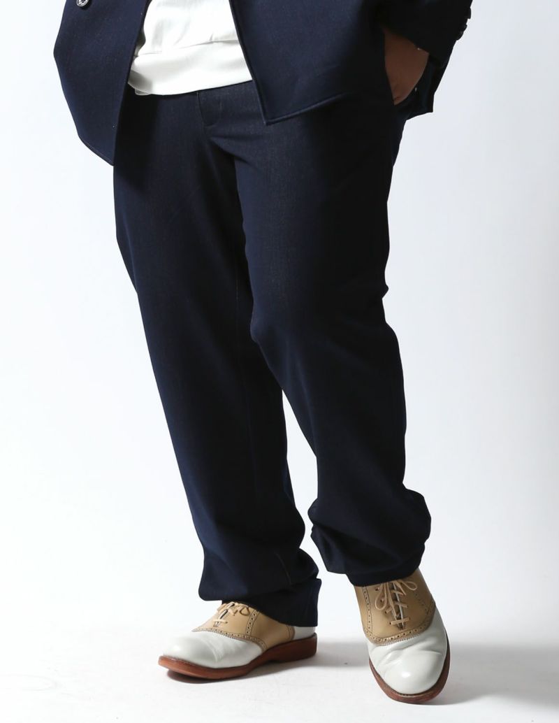 ドレッシーなシルエットに、デニム特有のカジュアル感とジャージの快適な着用感をプラス。