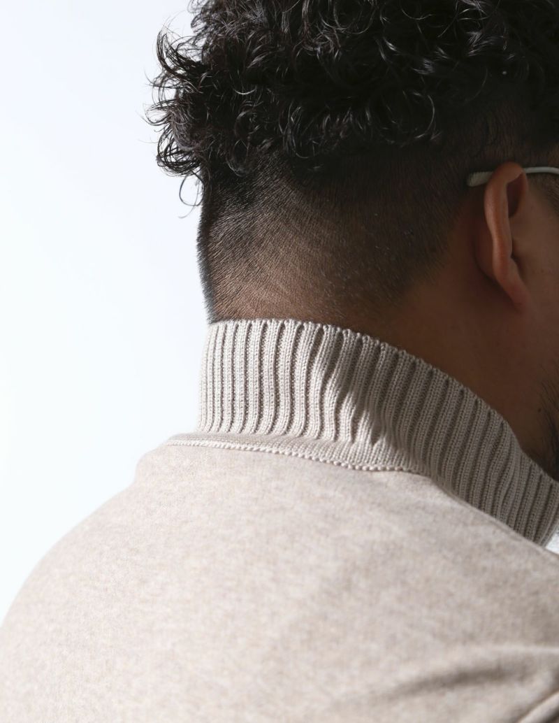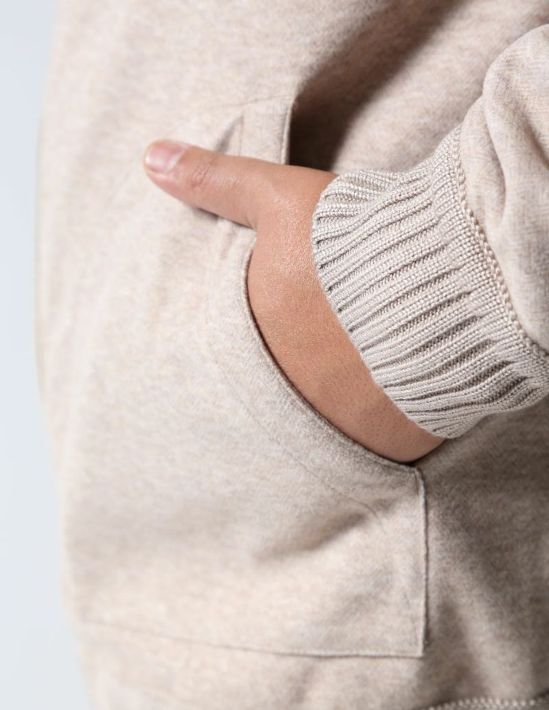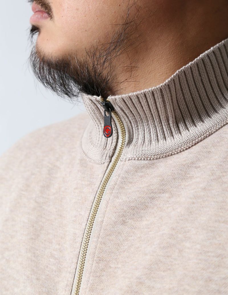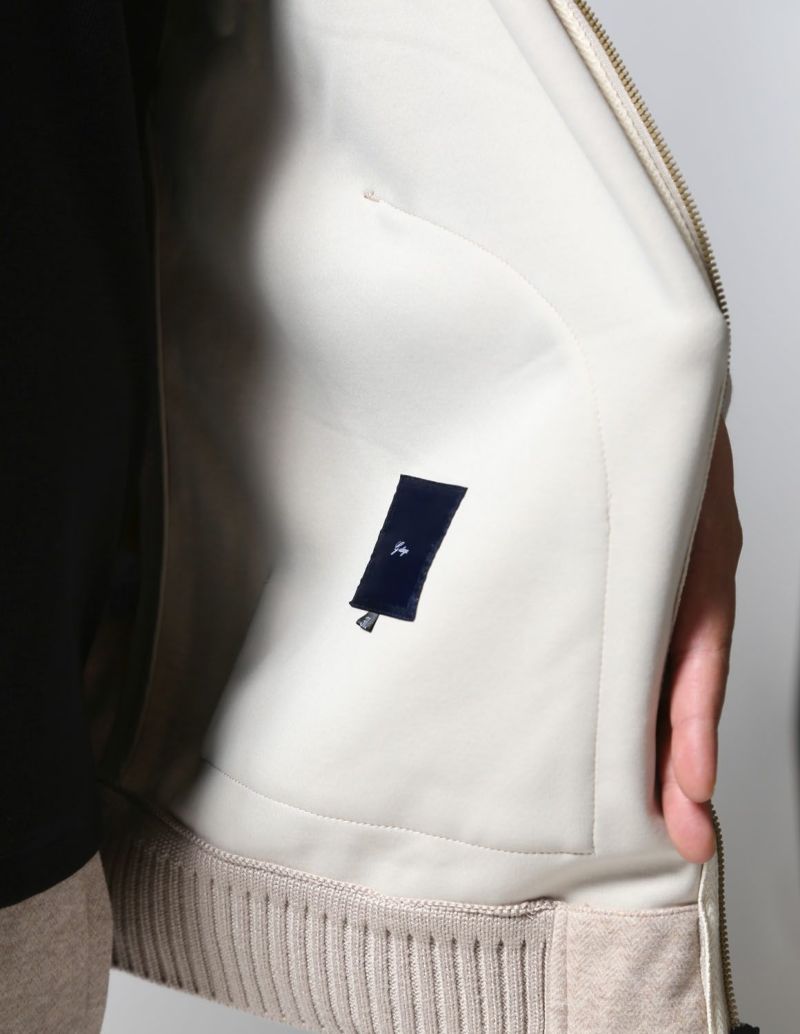 襟、裾、袖に編立のリブを配し、ウールライクな上品な面持にスポーティーなテイストをプラス。利便性とデザイン性を考慮した、やや大振りな脇ポケットもアクセントになっています。