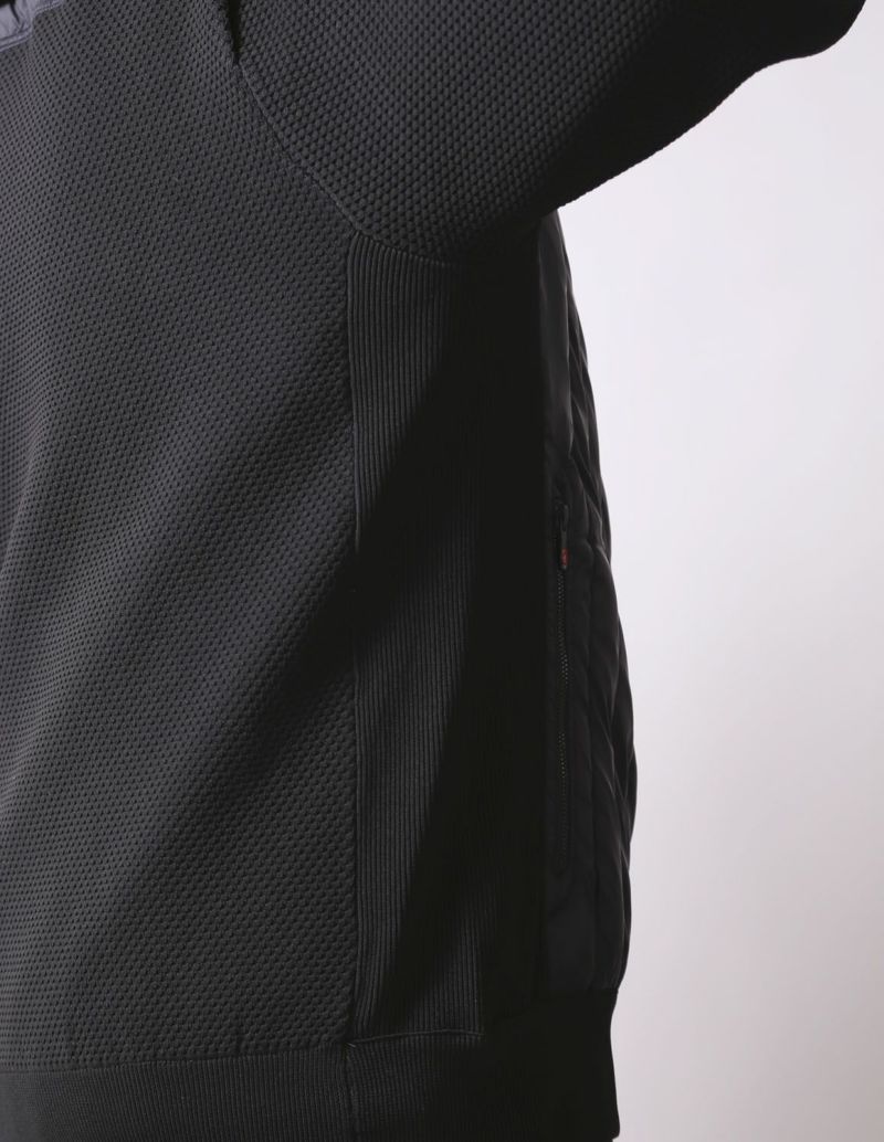 秋先にはTシャツの上に羽織るライトアウターとして、冬には首元まで配されたフロントZIPを締めて、ジャケットやコートのインナーとしても着用できる着回し力あるアイテム。