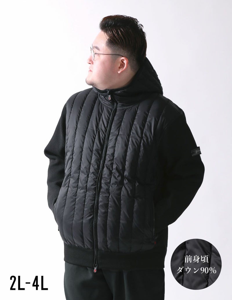 表地:ナイロン100%、後身頃・袖:ポリエステル100%、中綿:ダウン90% フェザー10%