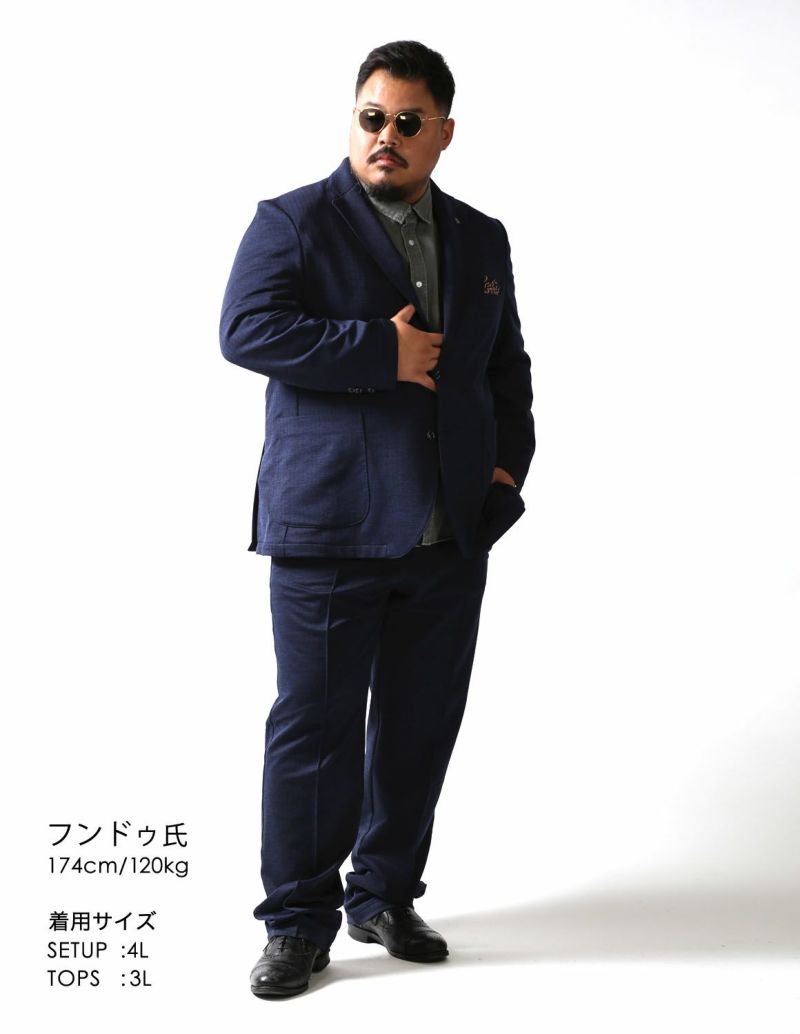 【大きいサイズ メンズ】G-stage(ジーステージ) ヘリンボーン ジャガード ジャージ ジャケット スラックス パンツ ストレッチ セットアップ カジュアルスーツ 2L/4L