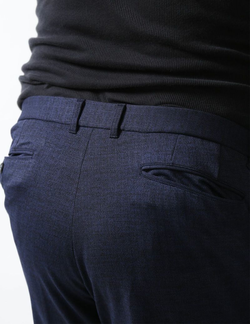 • プリントではなく、ジャガードで表現されたヘリンボーン柄は、ジャガード特有の凹凸感と杢調の深みのある色合いが魅力。ほど良い肉厚感のジャージ素材で、体に沿って伸縮する快適な着心地を併せ持ったアイテムです。