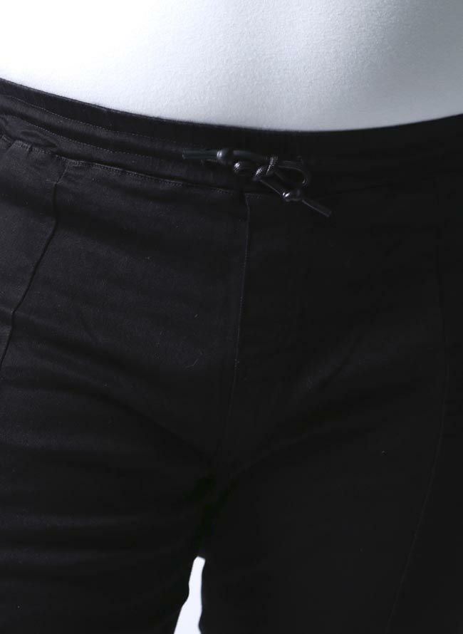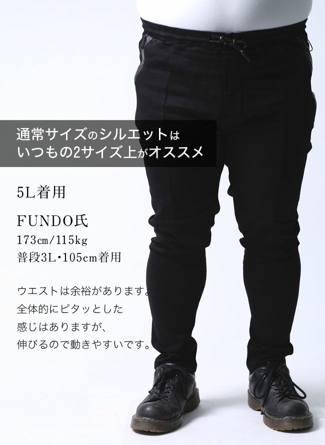 ウエストはゴム仕様でゆったりめの設計で、太ももからスマートシルエットでストレッチが効いているので、脚にフィットするデザインです。
