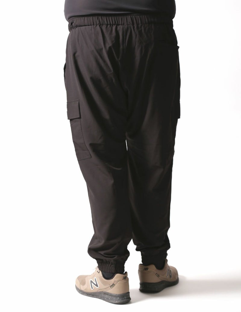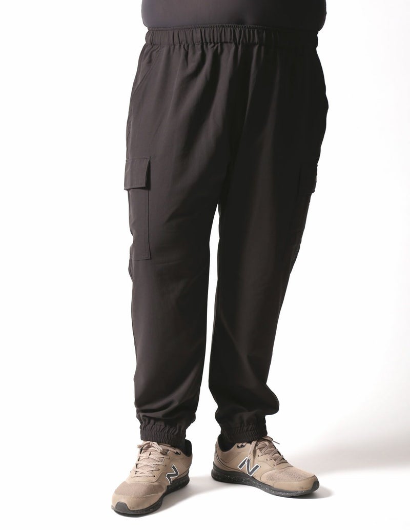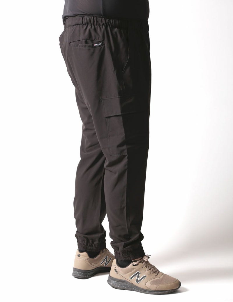裾を絞ったジョガータイプになっており、サイドにはフラップのポケットが付いたカーゴパンツ。