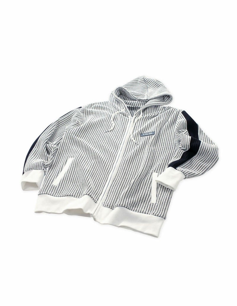 袖は切替のライン配色になっており、モノトーンでデザイン性のあるパーカーです。