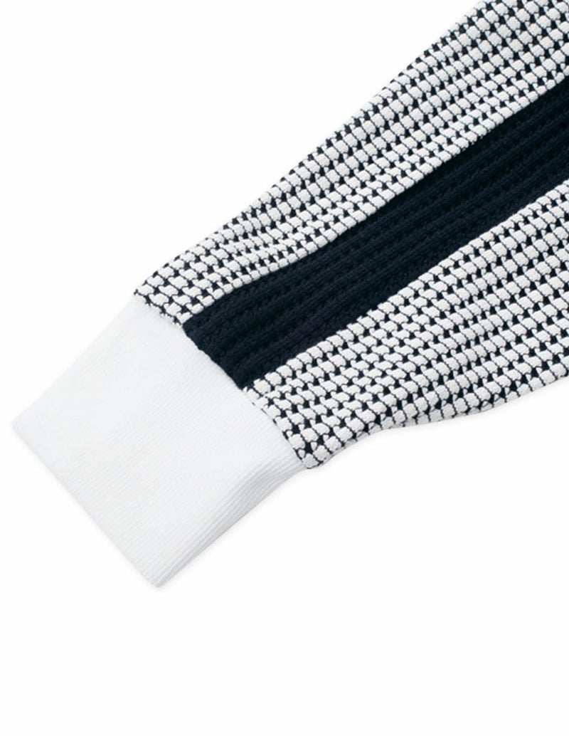 ざっくりとしたワッフル生地の表情とモノトーンのラインデザインが特徴なので、合わせるアイテムはシンプルめが◎