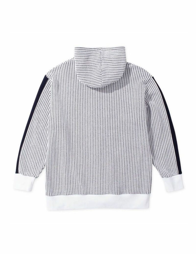 袖は切替のライン配色になっており、モノトーンでデザイン性のあるパーカーです。