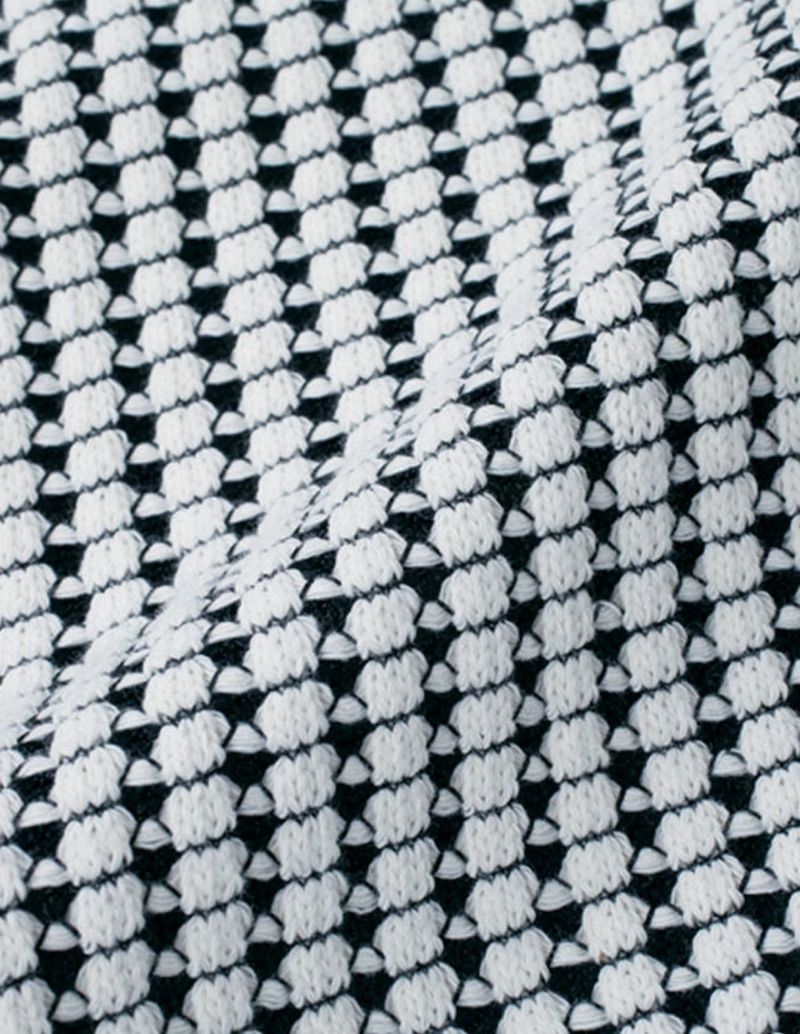 ざっくりとしたワッフル生地の表情とモノトーンのラインデザインが特徴なので、合わせるアイテムはシンプルめが◎
