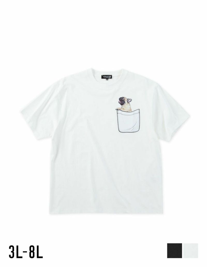 胸ポケットがあるように見えるトリックアートがプリントされたクルーネックTシャツ。