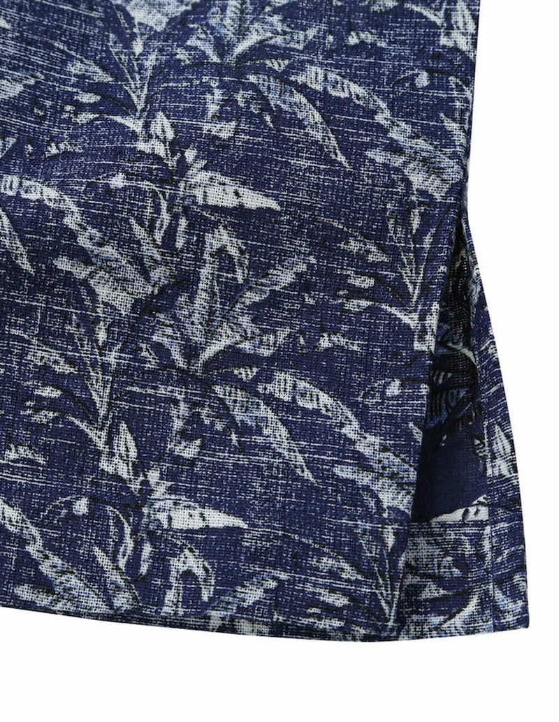 裏使いのこなれ感ある総柄プリント、リラックス感のあるオープンカラー