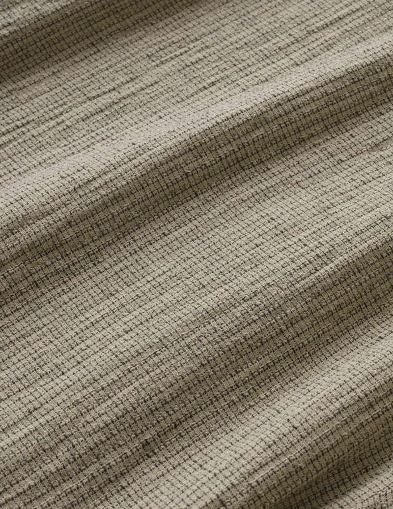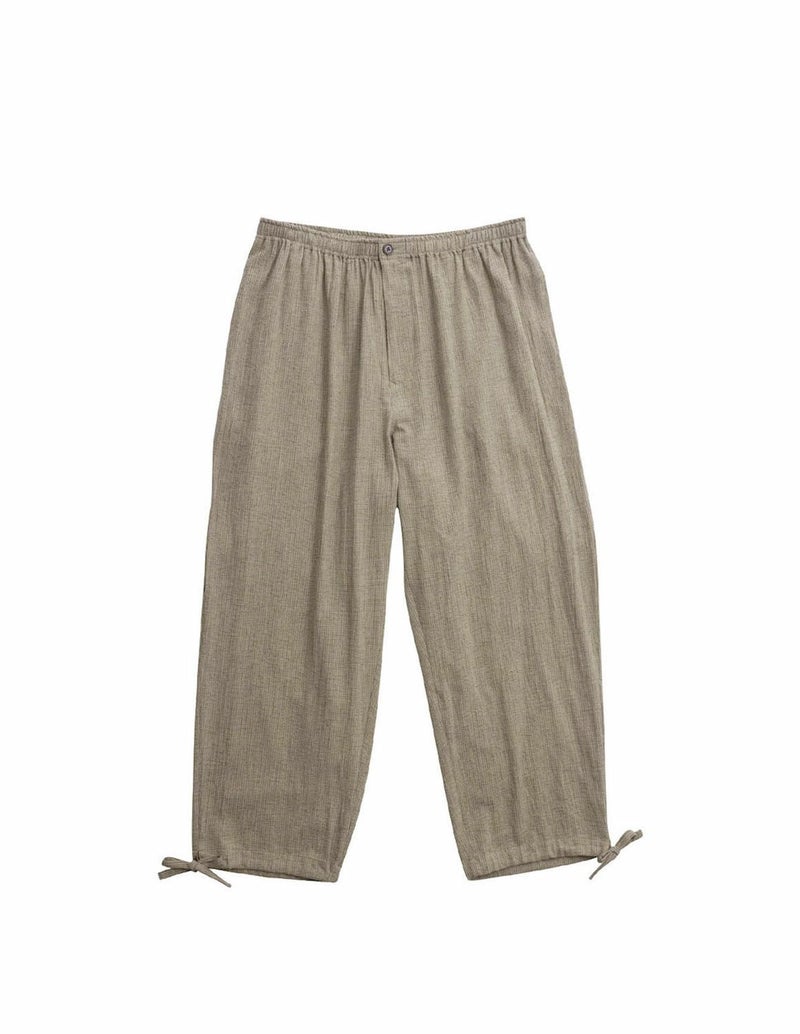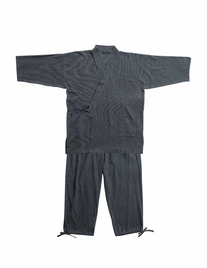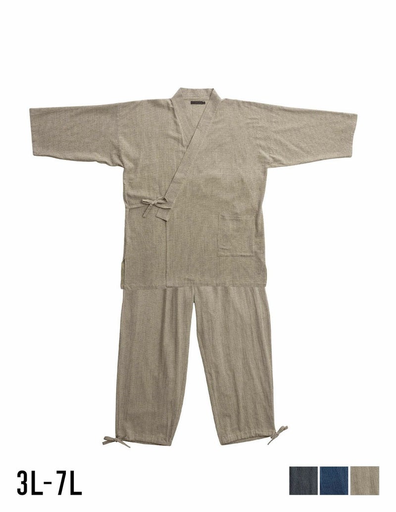 全体のトーンを合わせて「大人の和カジュアル」に。しじらの素材感が際立つよう、ボトムスや小物は無地で色味を抑えると◎