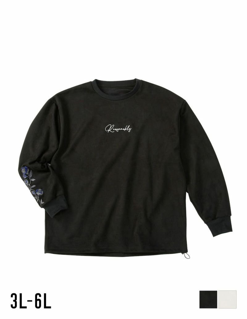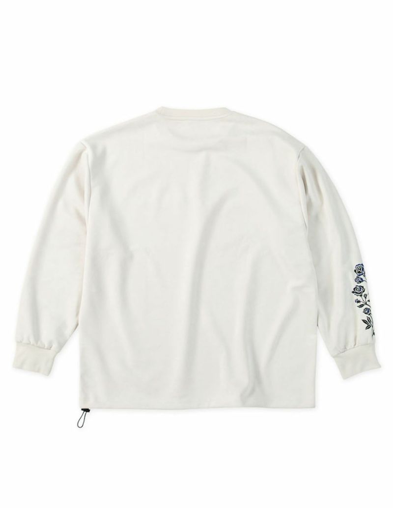 フロントのロゴ刺繍と右袖にあしらわれたバラの刺繍が、クールで上品な印象をプラス。
