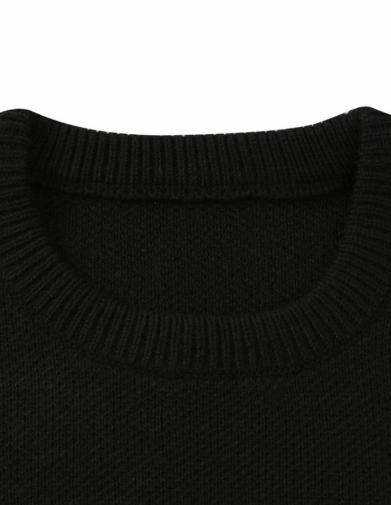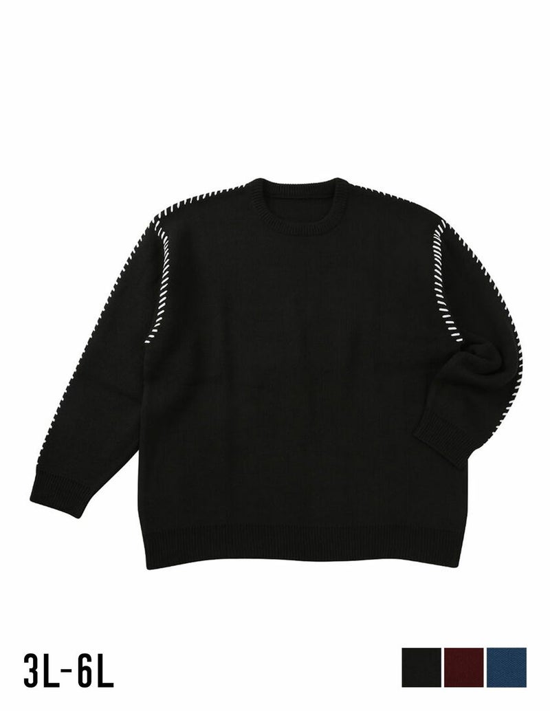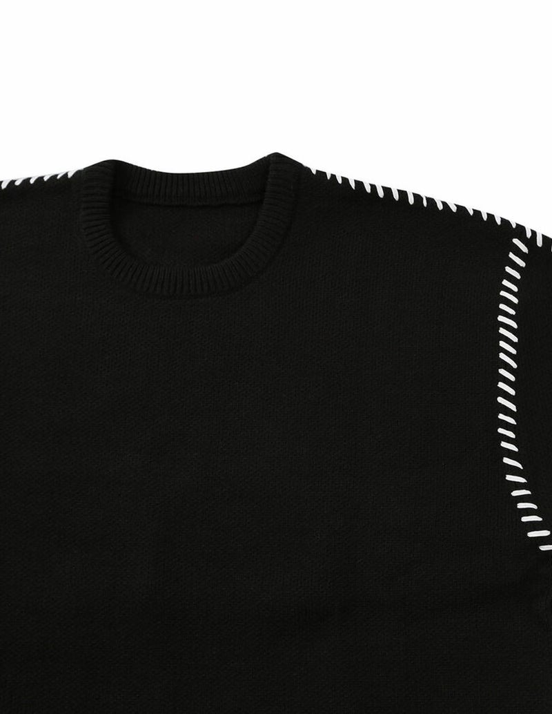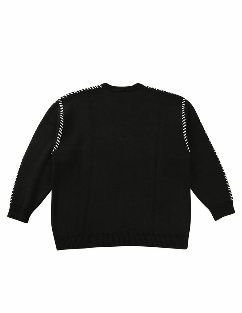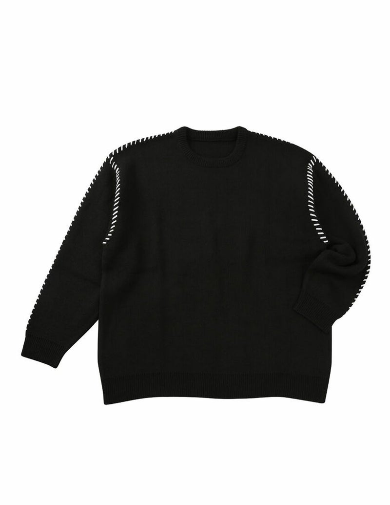 ハンドステッチ調のデザインが施された、表情豊かなクルーネックニット。ダブルジャガード編みによるしっかりとした生地感で、着心地とデザイン性を両立した一着です。