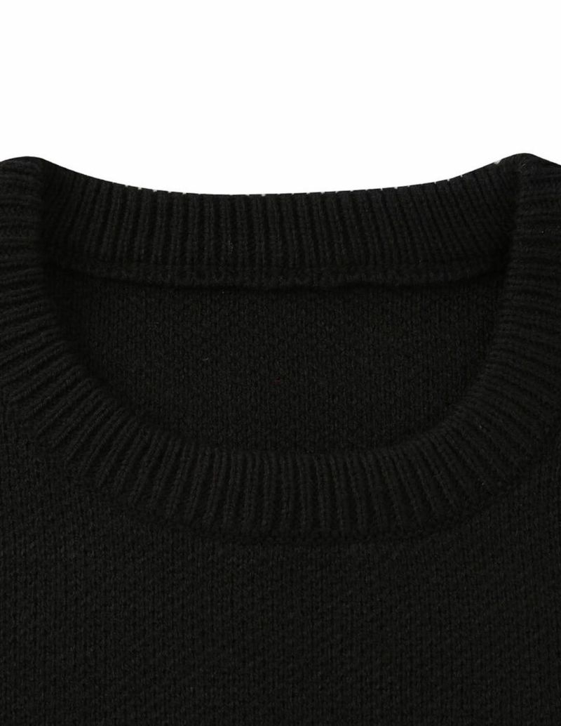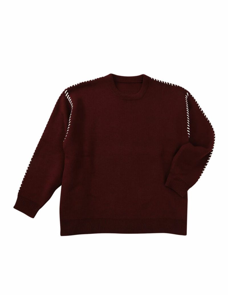 ハンドステッチ調のデザインが施された、表情豊かなクルーネックニット。ダブルジャガード編みによるしっかりとした生地感で、着心地とデザイン性を両立した一着です。