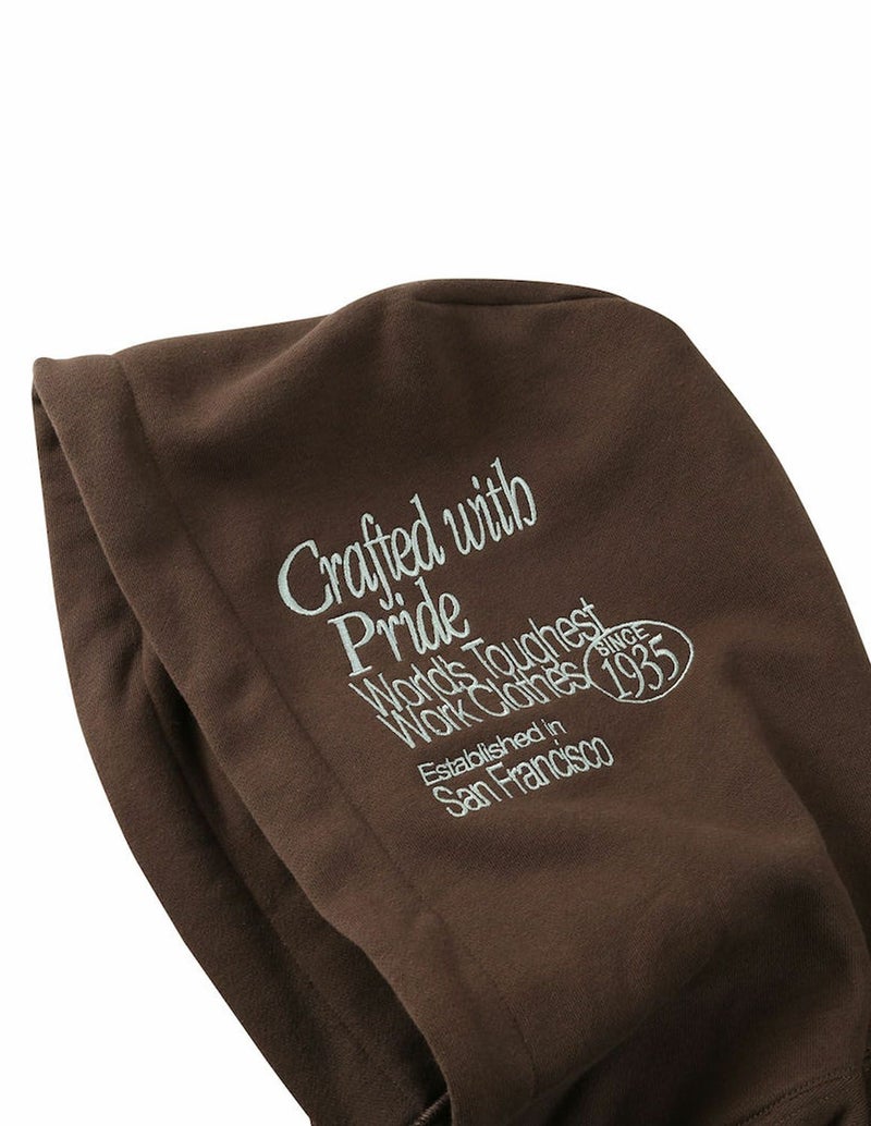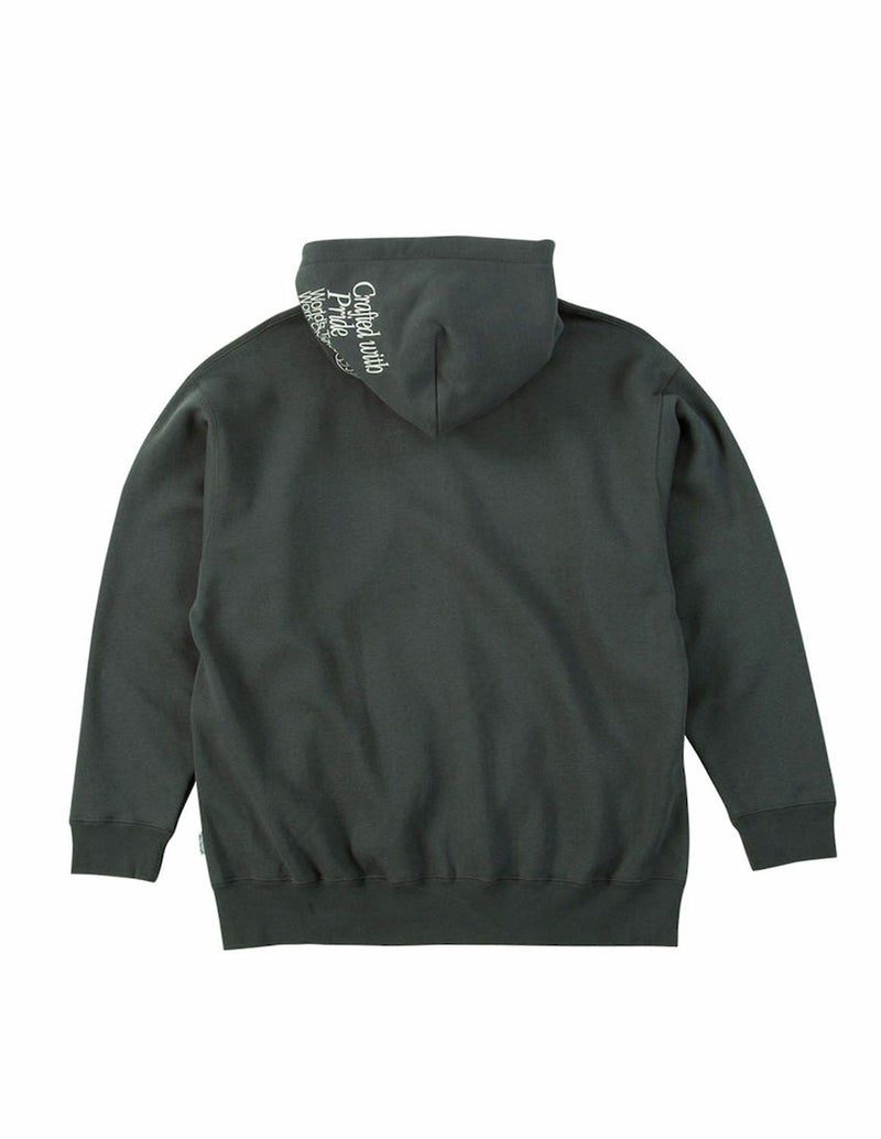 フロントとフードに施された刺繍ロゴが目を引く、存在感のある一着。