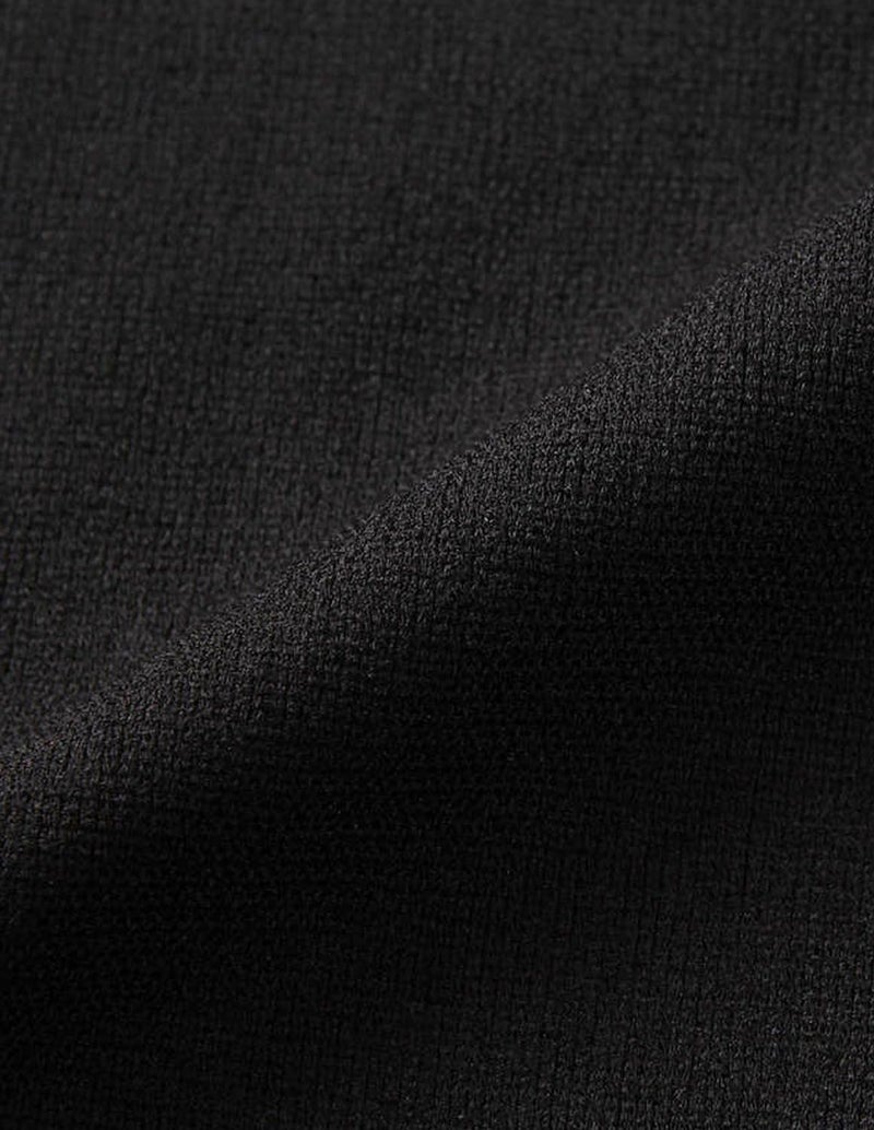 シャリ感のあるポリエステル素材。縦と斜め方向に伸び感があります。