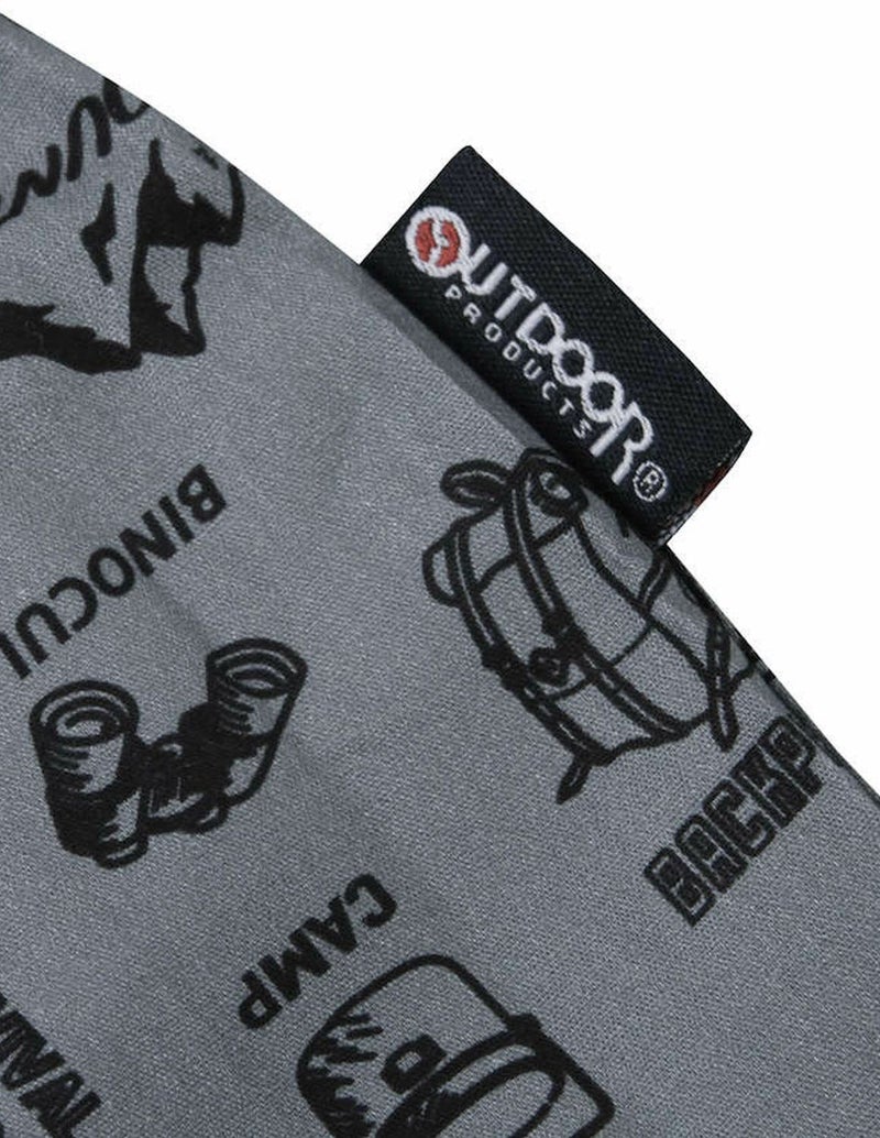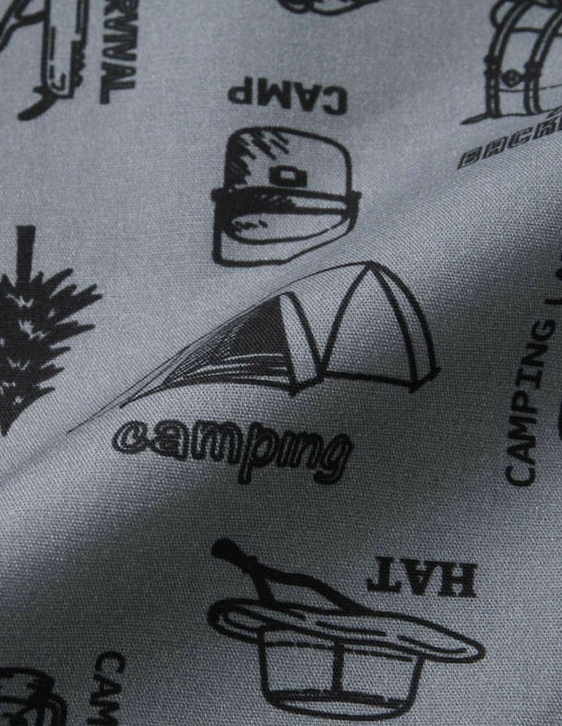 総柄に描かれた様々なキャンプアイテムが印象的な1枚。
