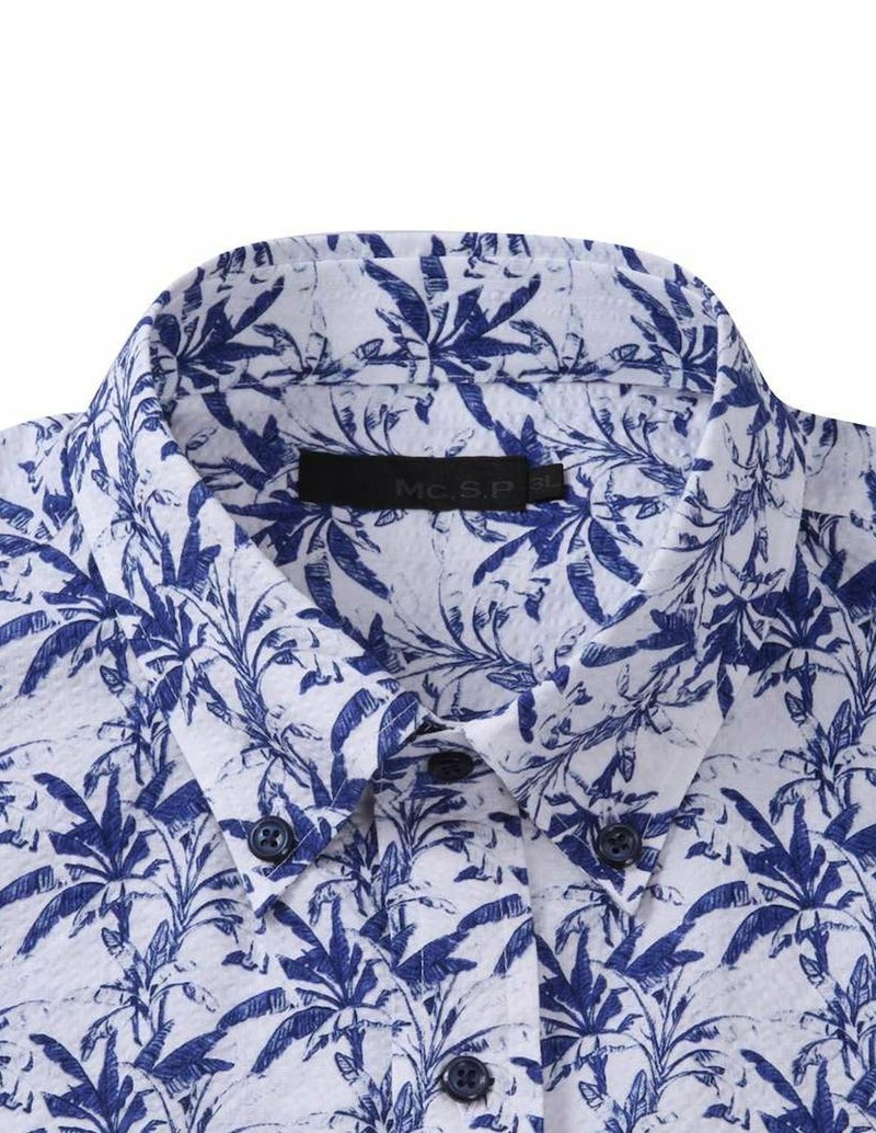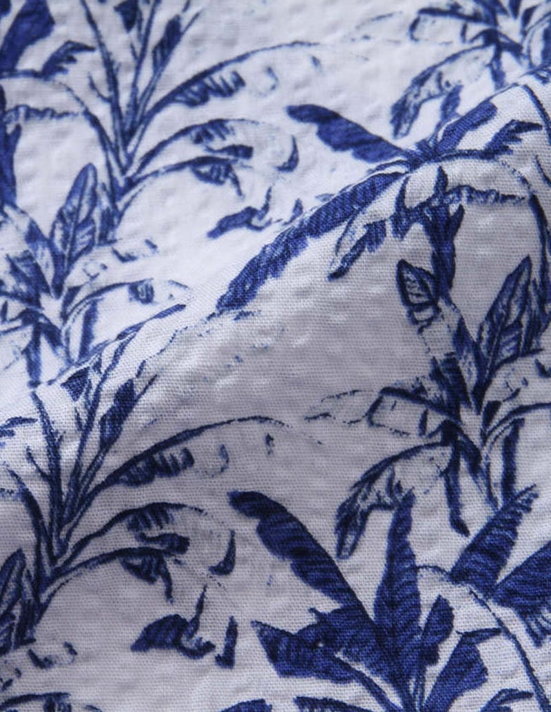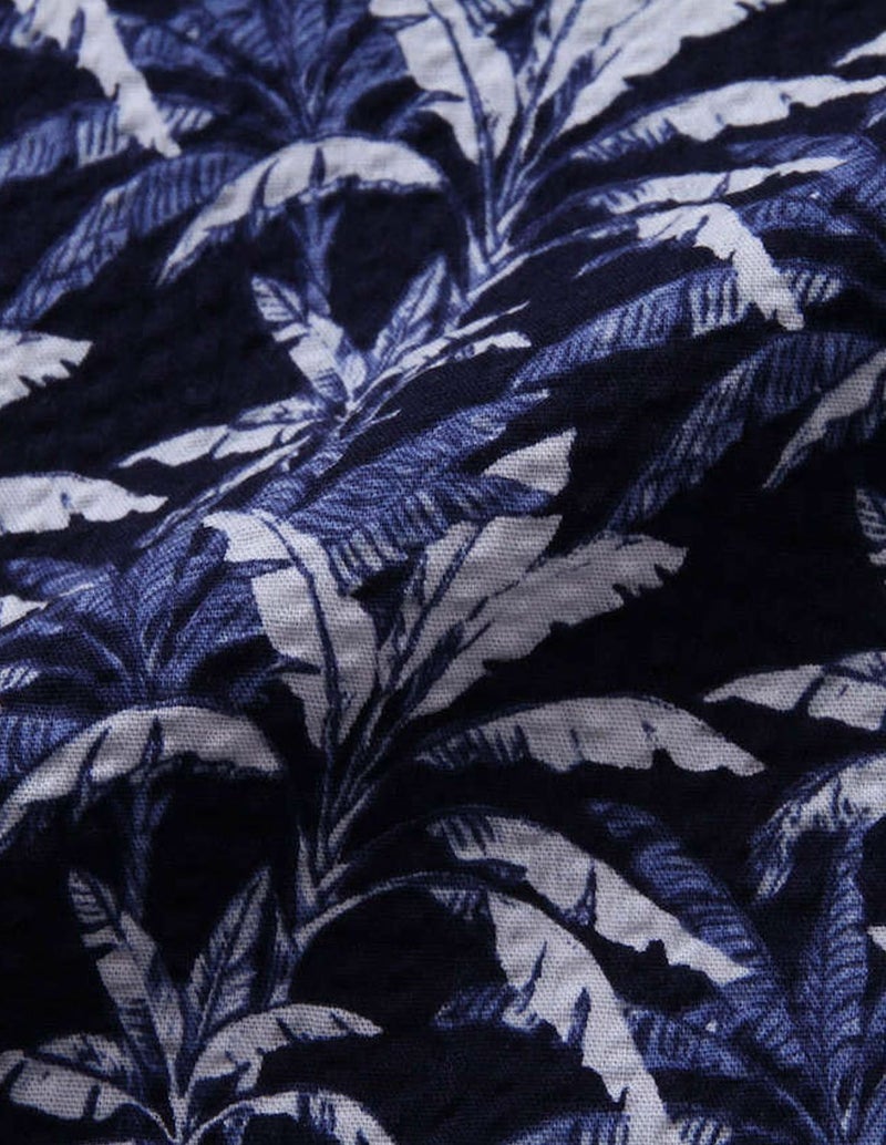 日本製の凸凹感のあるサッカー生地を使用した総柄半袖ボタンダウンシャツが登場!