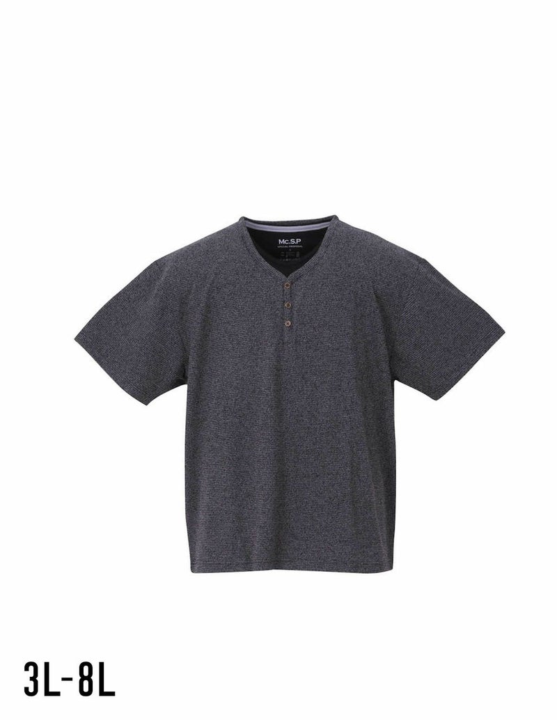 襟もとが特徴的なパイルフェイクレイヤードヘンリー半袖Tシャツが登場。