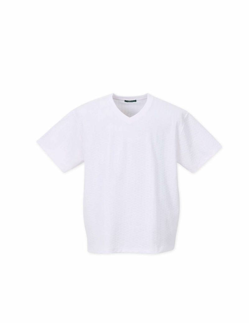 格子柄が立体的に編まれた生地が印象的なジャガードVネック半袖Tシャツが登場。