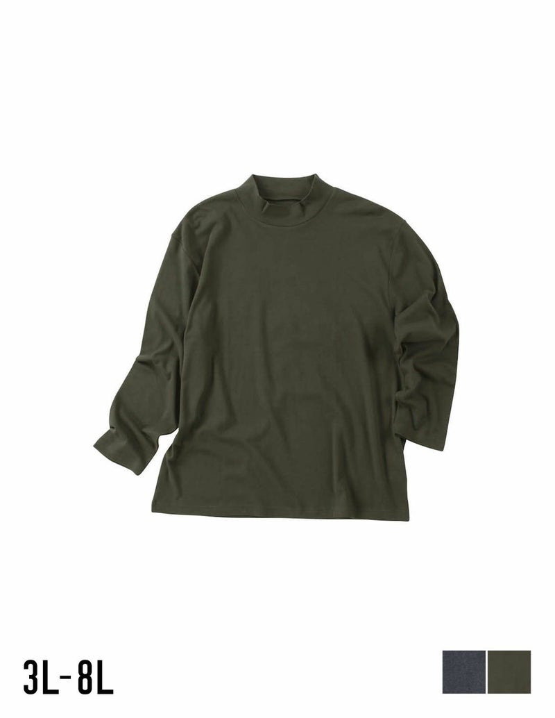 【大きいサイズ メンズ】起毛 ハイネック オーガニックコットン100% 長袖Tシャツ カットソー 3L/4L/5L/6L/7L/8L/