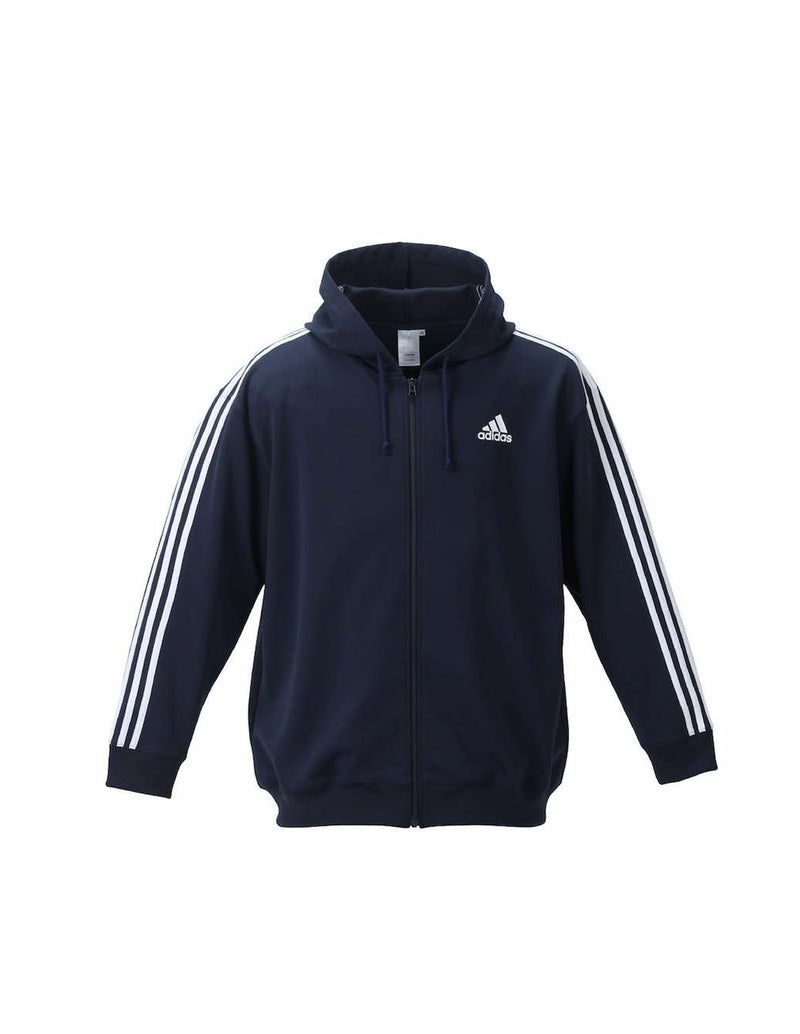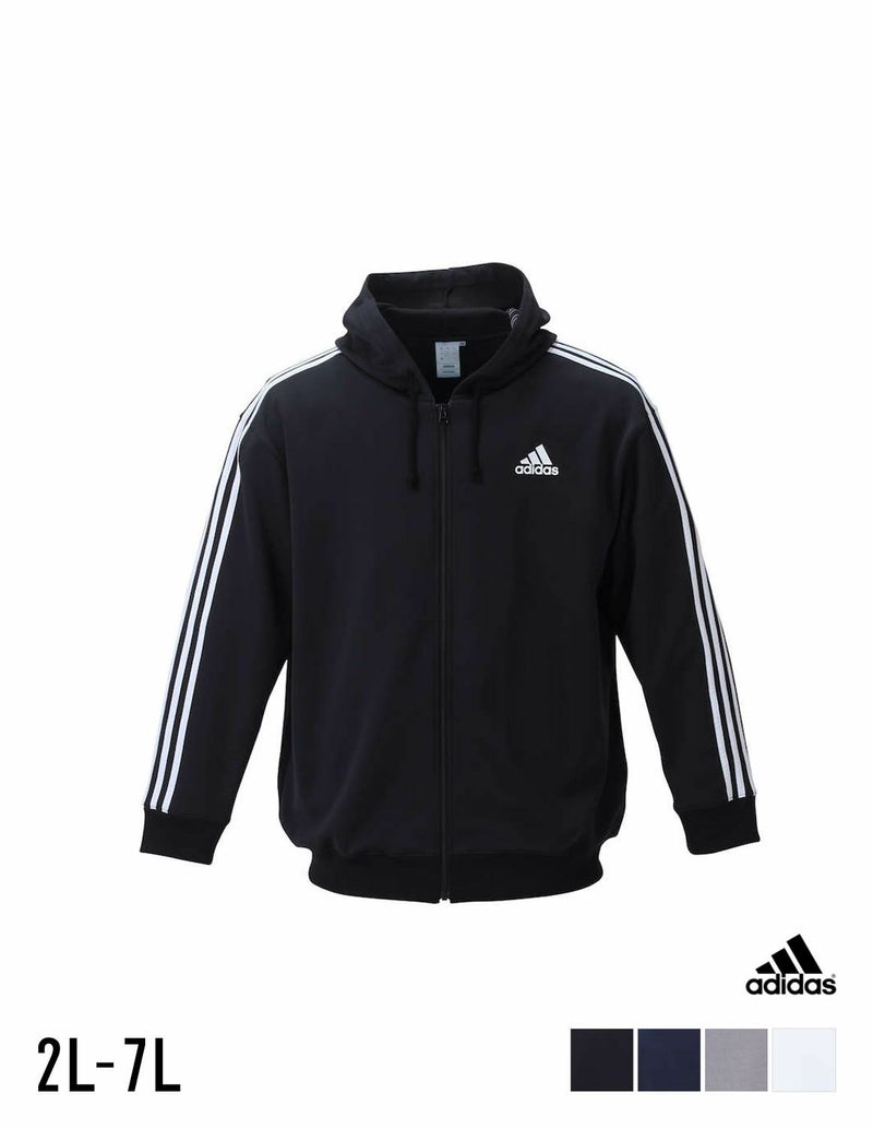 【大きいサイズ メンズ】adidas (アディダス) 吸汗速乾 ロゴ スリーストライプス スウェット フルジップパーカー 3XO(2L)/4XO(3L)/5XO(4L)/6XO(5L)/7XO(6L)/8XO(7L)/