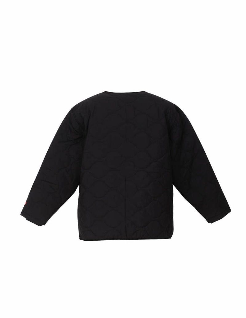 表面は全体にステッチが入ったキルティング生地で、裏面はつるつるとした袖通りの良いポリエステル素材。