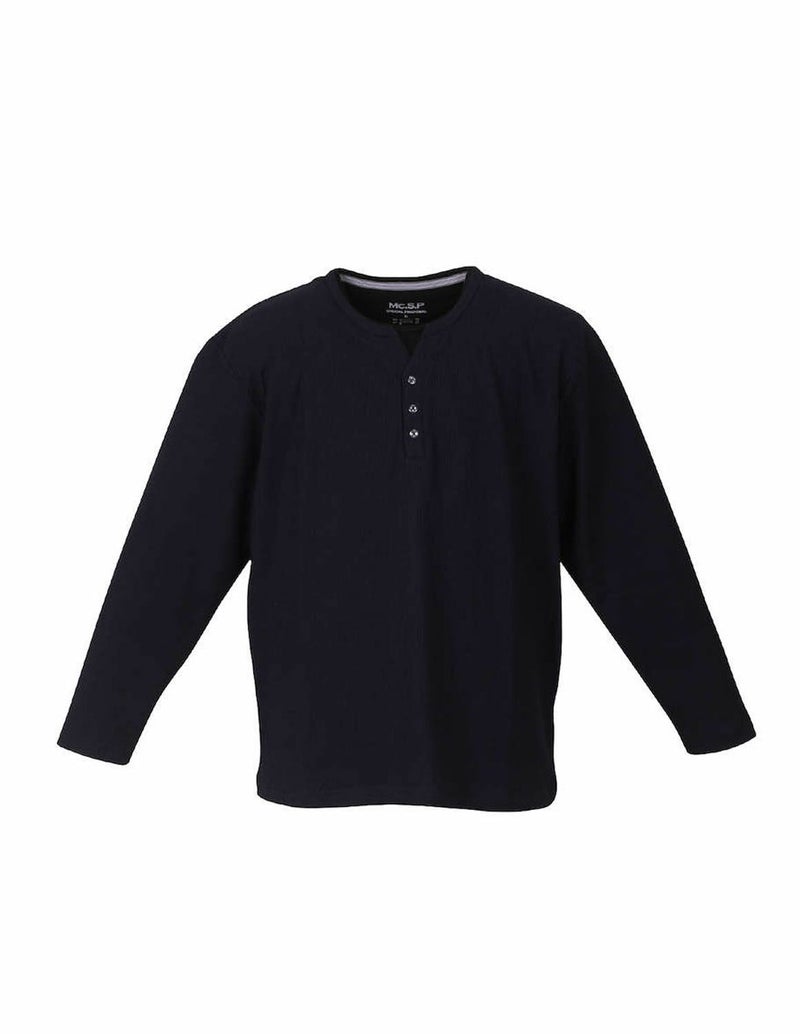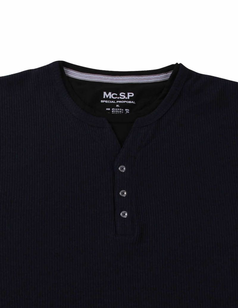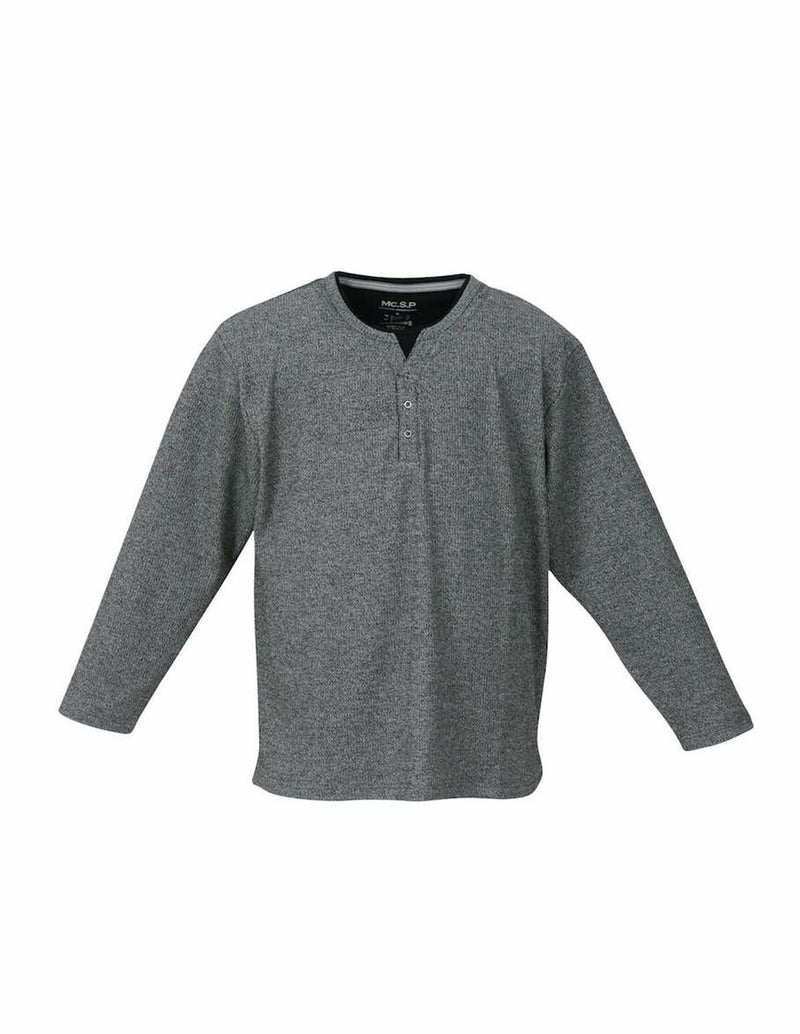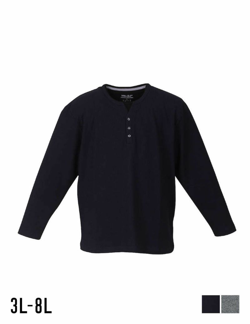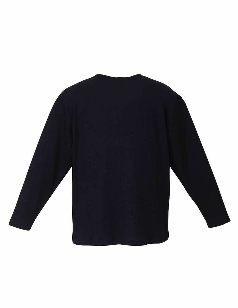パッと見ヘンリーネックに見えるようアレンジされた、裏起毛フェイクレイヤードYヘンリー長袖Tシャツが登場。